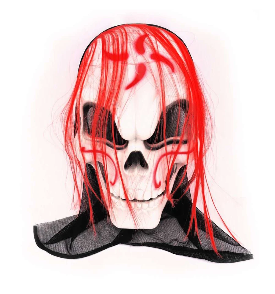 Маска Смерть с капюшоном (Halloween Scary Horror mask) изготовлена из пластика. Белая маска с красными элементами и красными волосами закрывает все лицо и голову. Размер изделия : универсальный. Маска для вечеринки надежно фиксируется на голове с помощью черной резинки. Дополнить свой устрашающий образ на Хэллоуин можно с карнавальными аксессуарами: Карнавальный плащ ВетхийКарнавальные маски принесут изюминку в образ вашего персонажа на тематической вечеринке, карнавале или маскараде. Многообразие образов, безусловно, облегчит Ваш поиск оригинального образа. Наш магазин предлагает карнавальные аксессуары оптом и для дропшипперов, вы можете оформить заказ на сайте PrazdnikShop и задать любые интересующие вопросы менеджеру, заказав звонок на нашем сайте.