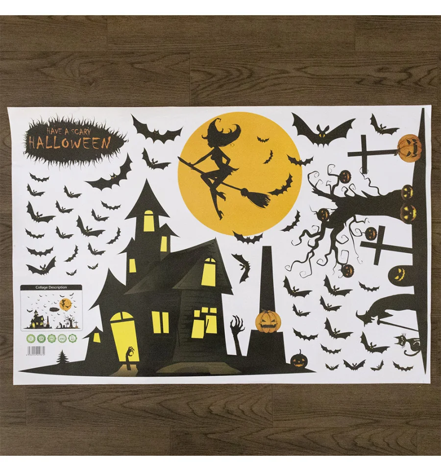 Интерьерная наклейка HL Шабаш XL891 60х90см - это быстрый способ классно украсить свой дом. Интернет - магазин PrazdnikShop предлагает Вам купить интерьерные наклейки хоррор тематики, которые идеально подойдут на кухню, спальню, гостиную. Украшение на стену оценят в комнате страха или декора хэллоуин. Как 3D наклейка клеится на стену ? Способ поклейки очень прост. Для начала необходимо очистить поверхность, на которую необходимо наклеить. После снимаем пленку и переносим рисунок на стену или другую плоскость рукой или ветошью. На какие поверхности можно клеить интерьерную наклейку ? Поклейка возможна на любую ИДЕАЛЬНО ГЛАДКУЮ ГЛЯНЦЕВУЮ поверхность, например : стена окрашенная глянцевой краской без каких-либо рельефов ( в краске не должно быть мелового компонента), стекло, зеркало, лакированные поверхности, гладкий пластик. На обои клеить НЕЛЬЗЯ. Ухаживать за стикерами на стену также достаточно легко, для этого необходимо лишь иногда протирать их влажной губкой или тряпкой. Яркость и насыщенность наклеек не меняется с течением времени, кроме того они абсолютно устойчивы к влажности.