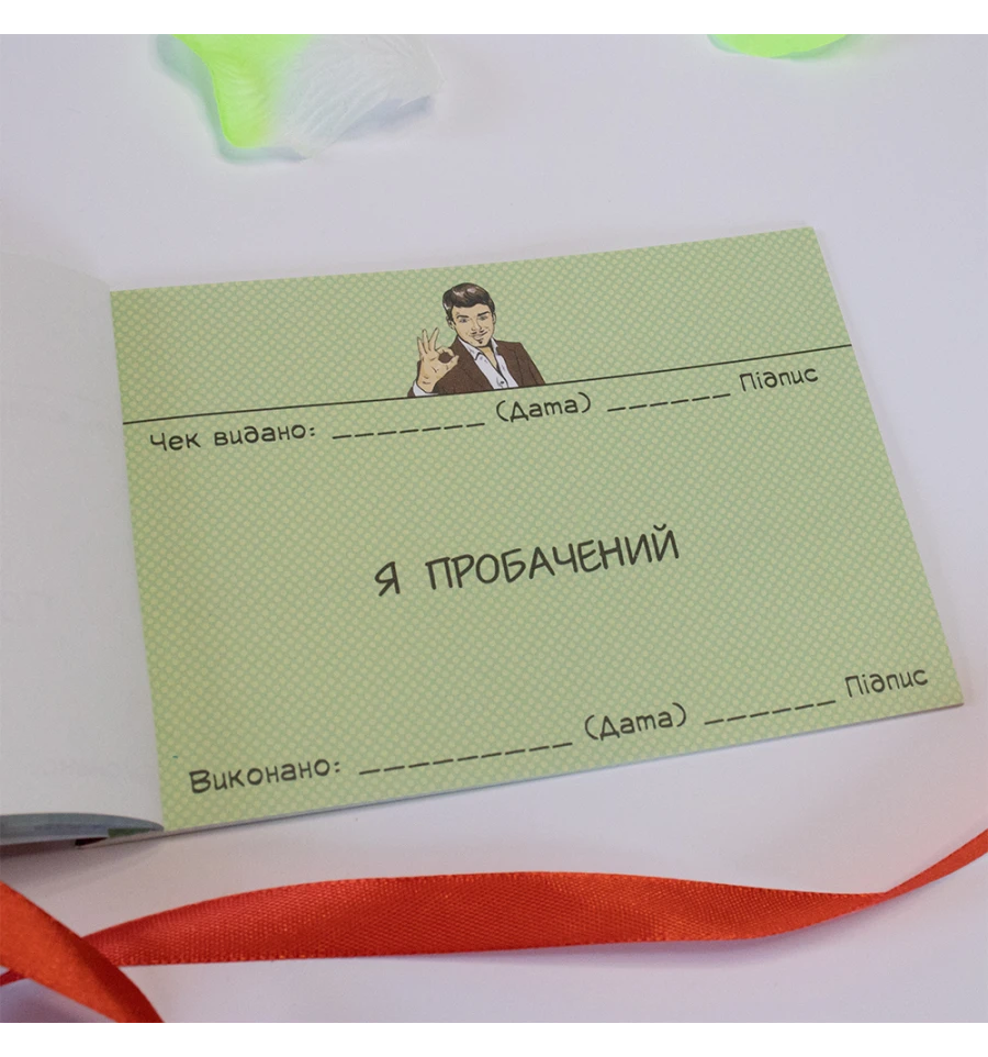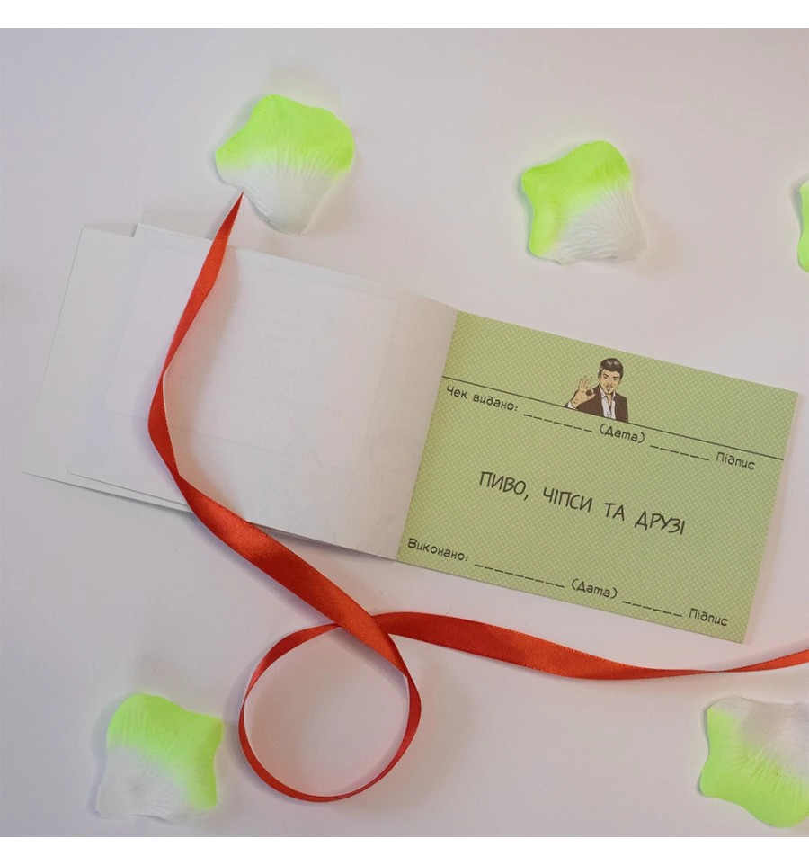 Чековая книжка желаний ДЛЯ КОХАНОГО (укр. ) – самый дорогой подарок, так как Вы дарите самые бесценные вещи Любовь и Внимание. Это прекрасный и незабываемый подарок на любой праздник для Вашей половинки. С подарком Чековая книжка желаний ДЛЯ КОХАНОГО (укр. ) Вы обязуетесь выполнить 15 простых, но в тоже время очень приятных квестов или желаний вашего парня в установленный период. Книжка состоит из 16 страниц, странички с подробной инструкцией по использованию и 15 дизайнерских купонов с желаниями все на русском языке. Например – в баню с друзьями, вечер видеоигр, поход на футбол и многие другие. Ваш любимый выбирает купон с желанием, а Вы должны его выполнить. В дополнение чековой книжке Вы можете приобрести сладкий сюприз и оригинальный подарок 100 и Одна Причина в нашем интернет магазине PrazdnikShop. Купив Чековая книжка желаний ДЛЯ КОХАНОГО (укр. ) вы получаете не только качественный товар, а и 100% позитивных впечатлений от приобретения.