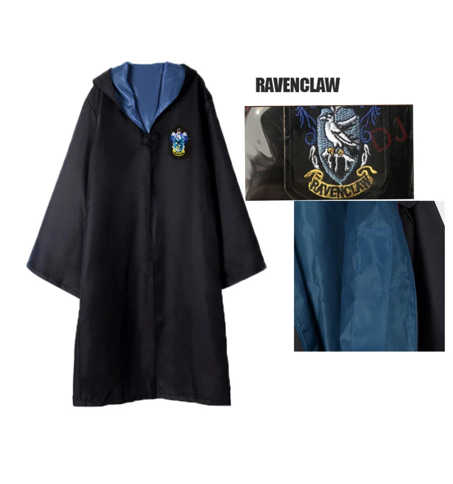 Почувствуй себя настоящим волшебником в мантии своего любимого факультета! Когтевран (англ. Ravenclaw) — один из факультетов Школы Чародейства и Волшебства Хогвартс, который основала Кандида Когтевран. Мантия Гарри Поттера для взрослых выполнена из габардина черного цвета с бордовой атласной подкладкой. Мантия Когтевран имеет глубокий капюшон, широкие рукава. На левой внешней стороне мантии волшебника на уровне сердца вышита эмблема герба Когтеврана, а на внутренней имеется карман для волшебной палочки. В английском оригинале факультет называется Ravenclaw, что переводится как коготь ворона (отсюда перевод Когте-вран). Популярная когтевранская пословица гласит wit beyond measure is man’s greatest treasure (Ума палата дороже злата, в оригинале: остроумие сверх меры является величайшим сокровищем человека). Форменная одежда из мира Гарри Поттера в Украине Оптом и по дропшиппинг. Плащ (Мантии) всех факультетов Хогвартс: Гриффиндор, Слизерин, Когтевран, Пуффендуй (из мира Гарри Поттера). Только у нас самый большой выбор взрослых карнавальных костюмов по доступной цене.