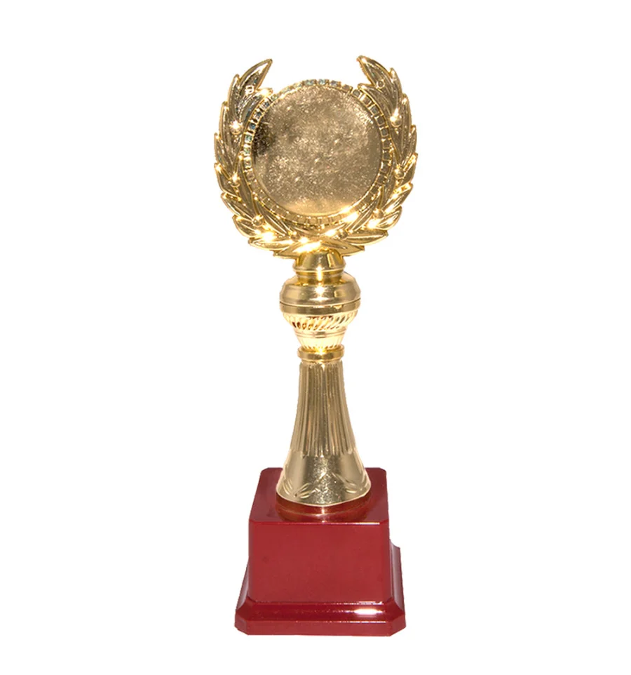 Статуэтка 57009 Лавровый венок превосходный и оригинальный подарок. Подарочная статуэтка выполнена в виде лаврового венка внутри коготого распологается диск на опоре из пластика с покрытием под золото на устойчивой подставке, такой сувенир станет отличным украшением интерьера и запоминающимся подарком. Статуэтка упаковывается в индивидуальный подарочный тубус из прозрачного пластика. Уникальная упаковка разработана компанией PrazdnikShop. На статуэтках также возможно выполнить печать индивидуальной надписи с диаметром жетона 50мм. Цвета фона: синий, красный, зеленый. Также изготавливаем индивидуальную печать надписи на табличке для пьедестала Кубков и Статуэток размерами: 5. 2х3. 5см (цвет текста - черный, фон - золотой). На бордовом пьедестале статуэтки может присутствовать имитация мраморных разводов. Наш магазин предлагает товары оптом и для дропшипперов, вы можете оформить заказ на сайте PrazdnikShop и задать любые интересующие вопросы менеджеру, заказав звонок на нашем сайте.