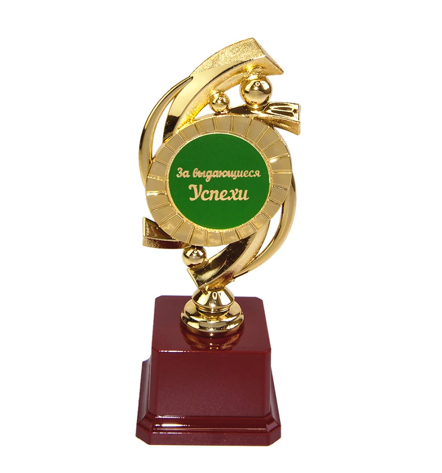 Дополнительные характеристики | пьедестал - 7,5х7,5х5см, фигурка - 15,5х8х3,5см, диаметр жетона - 5см. пьедестал - бордовый, фигурка - золотой |