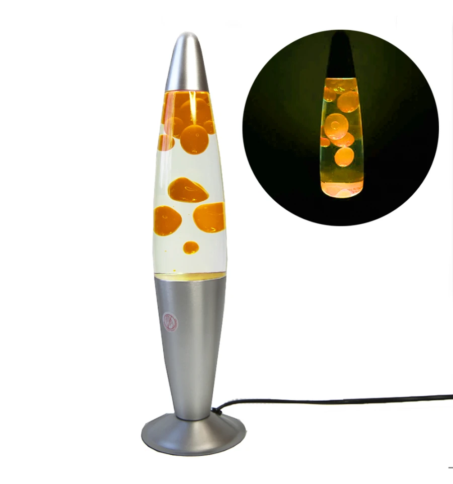 Творческим людям необходимо вдохновение. И каждый находит его в различных вещах. Если Вы ищете то, что будет Вас вдохновлять и давать Вам идеи для творчества. Интернет-магазин PrazdnikShop представляет Вам очень необычный аксессуар для Вашей комнаты или кабинета Лава лампа с парафином (34см) оранжевая. Лава лампа с парафином оранжевая - это очень необычный светильник ночник прекрасный источник для Вашего вдохновения. Лава лампа выполнена в виде колбы, в которой находится прозрачное масло и цветной парафин оранжевого цвета. Эту самую колбу надо поместить на подставку, в которой находится лампочка, которая подсвечивает и начинает нагревать парафин. Может кто-то не знает, но в холодном состоянии парафин тяжелее масла и тем самым он лежит на дне колбы, а при нагревании становится легче и начинает плавать по колбе. Лампа представлена в разных цветовых гаммах. Такая лампа завораживает и даже гипнотизирует, заставляя смотреть на прекрасный эффект. Так же если после долгого рабочего дня Вы хотите расслабиться и просто посидеть в кресле и отдохнуть, то Лава лампа сделает Ваш вечер намного приятнее, тот эффект который произведет лампа на Вас, позволит Вам насладиться отдыхом на полную. Светильник работает от розетки 220V. Для большего срока службы изделия время работы разогретой лампы не должно превышать 8-10 часов. При нагревании снизу 25 или 30-ваттной лампочкой, парафин начинает расширятся, нагревшись он становится менее плотным чем жидкость в которой он находится и это заставляет его подниматься. Для разогрева парафина понадобится около часа, постоянно держать включенной лампу нельзя. Рекомендуемое время работы лампы не более 3-4 часов на максимальной яркости и нагреве, после достижения активного движения - интенсивность нагрева/яркости следует уменьшить, для обеспечения поддержания отпимальной температуры. В комплектацию входит: стеклянная колба с парафином и маслом (жидкость бесцветная, а парафин цветной), пластиковая подставка со шнуром питания с реле (для регуляции интенсивностит нагрева), подключающимся в розетку и крышка, маленькая лампа накалывания.