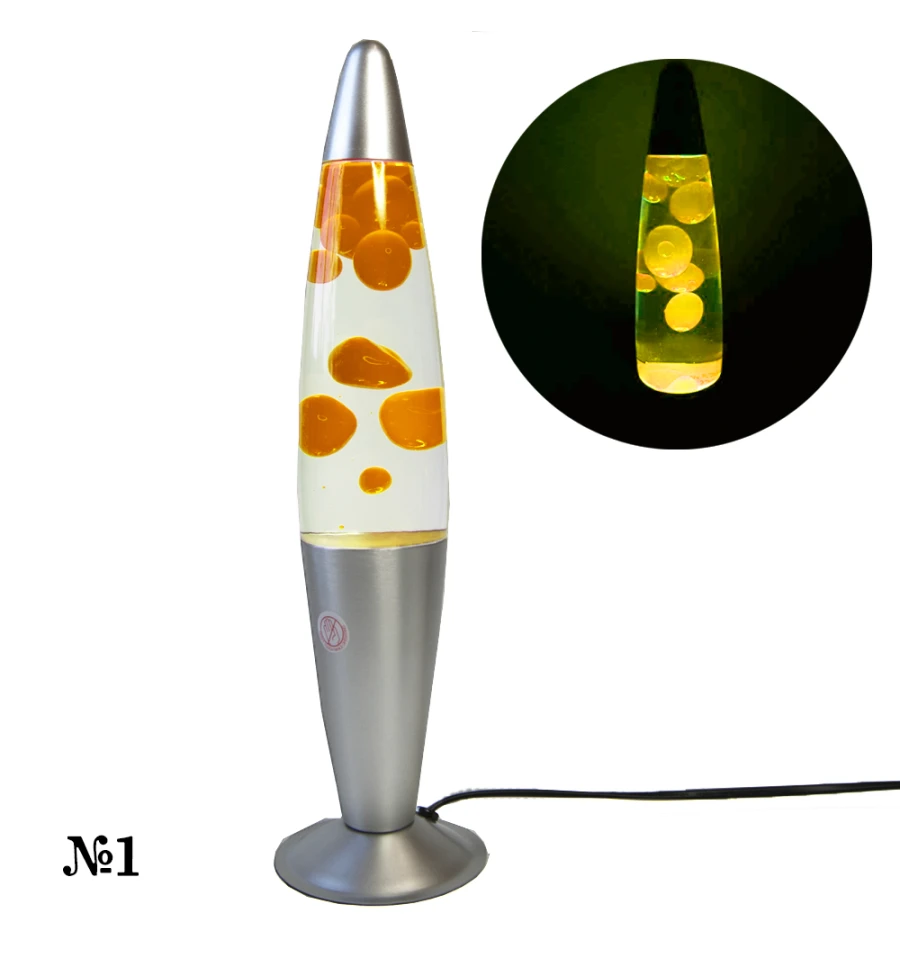 Творческим людям необходимо вдохновение. И каждый находит его в различных вещах. Если Вы ищете то, что будет Вас вдохновлять и давать Вам идеи для творчества. Интернет-магазин PrazdnikShop представляет Вам очень необычный аксессуар для Вашей комнаты или кабинета Лава лампа с парафином (40см) оранжевая. Лава лампа с парафином оранжевая - это очень необычный светильник ночник прекрасный источник для Вашего вдохновения. Лава лампа выполнена в виде колбы, в которой находится прозрачное масло и цветной парафин оранжевого цвета. Эту самую колбу надо поместить на подставку, в которой находится лампочка, которая подсвечивает и начинает нагревать парафин. Может кто-то не знает, но в холодном состоянии парафин тяжелее масла и тем самым он лежит на дне колбы, а при нагревании становится легче и начинает плавать по колбе. Лампа представлена в разных цветовых гаммах. Такая лампа завораживает и даже гипнотизирует, заставляя смотреть на прекрасный эффект. Так же если после долгого рабочего дня Вы хотите расслабиться и просто посидеть в кресле и отдохнуть, то Лава лампа сделает Ваш вечер намного приятнее, тот эффект который произведет лампа на Вас, позволит Вам насладиться отдыхом на полную. Светильник работает от розетки 220V. Для большего срока службы изделия время работы разогретой лампы не должно превышать 8-10 часов. При нагревании снизу 25 или 30-ваттной лампочкой, парафин начинает расширятся, нагревшись он становится менее плотным чем жидкость в которой он находится и это заставляет его подниматься. Для разогрева парафина понадобится около часа, постоянно держать включенной лампу нельзя. Рекомендуемое время работы лампы не более 3-4 часов на максимальной яркости и нагреве, после достижения активного движения - интенсивность нагрева/яркости следует уменьшить, для обеспечения поддержания отпимальной температуры. В комплектацию входит: стеклянная колба с парафином и маслом (жидкость бесцветная, а парафин цветной), пластиковая подставка со шнуром питания с реле (для регуляции интенсивностит нагрева), подключающимся в розетку и крышка, маленькая лампа накалывания.