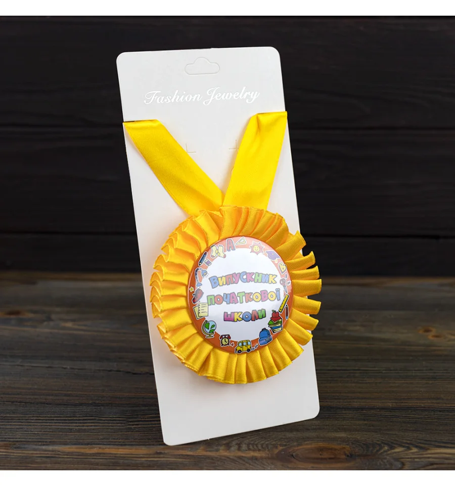 Дополнительные характеристики | диаметр розетки - 8,5см, диаметр жетона - 5,8см, длина ленты - 35см, принт - разноцветный |