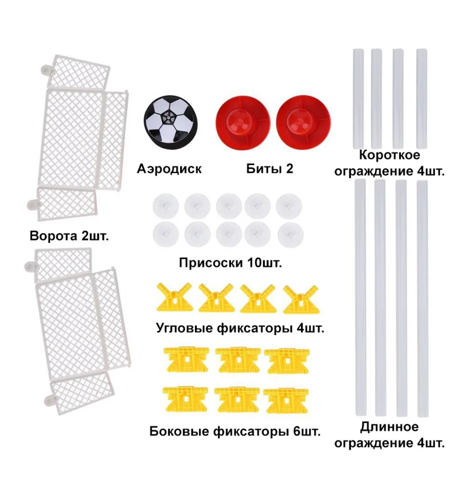 Играть дома мячом не самая хорошая затея, ведь очень легко запустить его в цветочный горшок, телевизор или окно. С летающим футбольным мячом HoverBall никаких незапланированных разрушений интерьера не случится. Мяч Hover Ball специально разработан для безопасной игры в помещении. Мощный вентилятор заставляет аэромяч парить по твердым поверхностям. По форме он представляет собой полусферу, которая двигается на воздушной подушке над поверхностью пола. Мягкий бампер по периметру игрушки защищает мебель и другие предметы от ударов. Летающий мяч Hover Ball был разработан специально для развлечения в помещении. Он оснащен толстым и мощным пенным бампером, который обеспечивает безопасность вашей мебели, стен и других ценностей. Он безобидно отскакивает от ножек стульев, стен и домашних животных, не оставляя царапин, сколов и отметок. Hover Ball оснащен LED-подсветкой, которая активируется при включении аэромяча и меняет несколько цветов по таймеру! Батареи у HoverBall расположены так, чтобы обеспечить равномерное распределение веса. Благодаря этому летающий мяч HoverBall и может парить в воздухе. Нижняя часть летающего мяча HoverBall закрыта защитной панелью. Открыв эту панель, вы увидите батарейный отсек. Hover Ball прекрасно работает на любых гладких поверхностях, включая ковры с небольшим ворсом, деревянные полы, линолеуму, ламинат, паркет и ковролин. Комплектация: мяч – 1шт., клюшка- 2шт, ворота – 2 шт, ограда: длинные рейки (35см)- 4шт, короткие рейки (15см) -4шт, угловые крепежи – 4 шт, удлинители – 6 шт, присоски – 10 шт. Текстильное поле с футбольной разметкой в комплектацию не входит. Работает от батарейки ААА (2 шт) в комплект не входят. Для того чтобы вставить или заменить батарейку, необходимо воспользоваться крестовой маленькой отверткой (в комплект отвертка не входит).