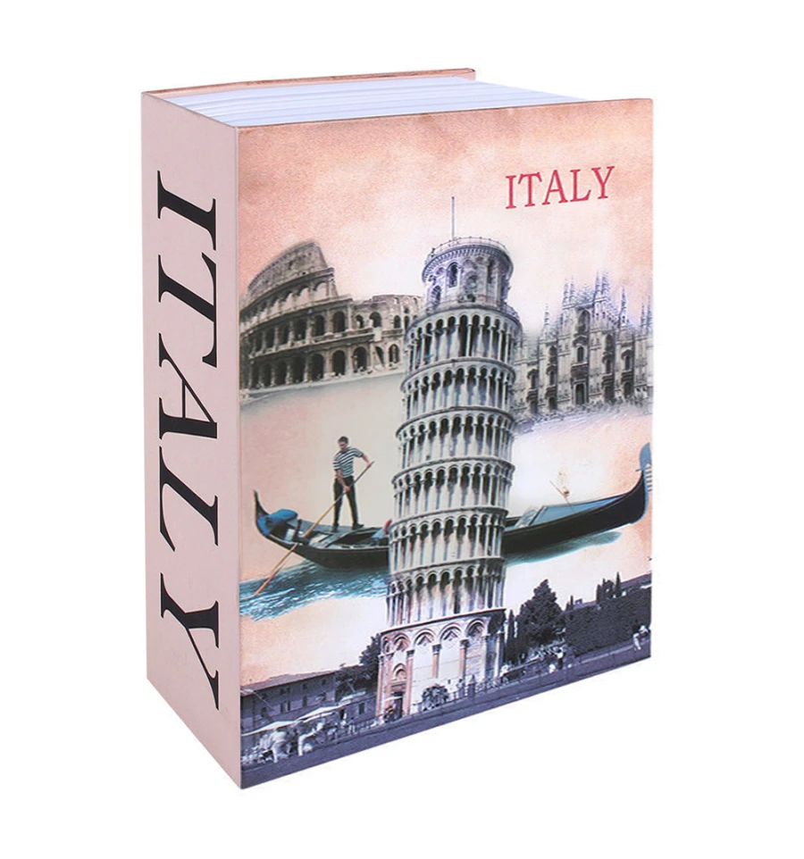 Книга сейф (24см) Италия – стильный, аристократический подарок для тех, кто любит читать и считать! Переданный нам от деда-прадеда способ хранить свои сбережения в книгах нашел свое современное воплощение! Оригинальный сейф в виде книги, книга-тайник, надежно будет сохранять ценности своего хозяина, находясь в книжном шкафу с обычными книгами. Металлическая коробка замаскирована под обычную книгу, облицована пластиковой обшивкой с изображением Пизанской башни. Внутренние размеры позволят спрятать пачки купюр толщиной до 5 см, а также хранить документы размером 17х10см. Каркас книги-обманки обработан таким образом, чтобы создать иллюзию множества страниц, соединённых вместе. Выглядит очень реалистично. В ряду на полке с другими книгами практически не отличить от обычной книги. Книга сейф – отличный подарок для ваших друзей, родных, коллег и начальства. Можете подарить такой подарок на день рождения или оригинально вручить на свадьбу молодоженам. В комплекте с книгой поставляется 2 ключа.
