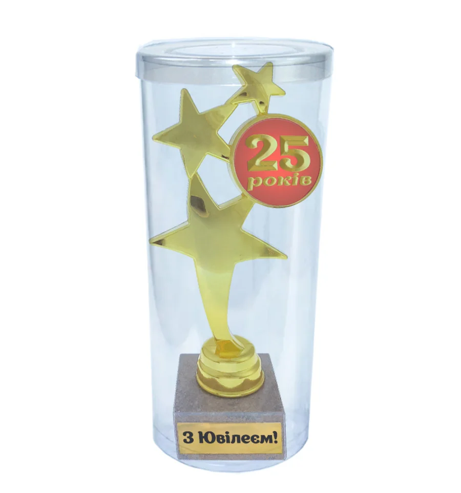 Какой выбрать подарок на юбилей? Чем порадовать именника в эти торжественные для него минуты? Как часто мы не можем решить: что подарить отцу? Каким должен быть подарок начальнику? Что вручить на юбилей другу? Ответ прост – юбиляру нужна статуэтка! Для хорошего настроения в этот день нужны оригинальные подарки и сувениры, глядя на которые, юбиляр впоследствии улыбнется. Статуэтка подарочная (наградная) в виде скопления звезд на подставке из натурального камня и изящная надпись на золотом фонет З Ювілеєм! и указанием знаменательной даты - произведет впечатление и, несомненно, станет отличным подарком на память! Статуэтка выполнена из пластика с покрытием благородного золотистого цвета с подставкой из натурального камня. Статуэтка упаковывается в индивидуальный подарочный тубус из прозрачного пластика. Уникальная упаковка разработана компанией PrazdnikShop. Наш магазин предлагает товары оптом и для дропшипперов, вы можете оформить заказ на сайте PrazdnikShop и задать любые интересующие вопросы менеджеру, заказав звонок на нашем сайте.