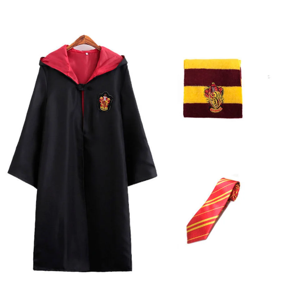 Костюм Гарри Поттер ученика Хогвартс Гриффиндор: Врата в мир волшебства открыты! Мечтали когда-нибудь оказаться в легендарном замке Хогвартс, пройти по его тайным коридорам и освоить магию? Теперь есть такая возможность! Представляем полный костюм ученика Хогвартс - Гарри Поттера, созданный специально для поклонников мира магии и волшебства. Этот комплект - не просто одежда, это ваш пропуск в сказочную реальность, где каждый взмах палочки может изменить всё. Этот набор - идеальное решение для тех, кто хочет сразу получить всё необходимое для создания аутентичного образа. Вам не придётся искать каждую деталь по отдельности. В комплект входят три ключевых элемента, которые мгновенно превратят вас в студента факультета Гриффиндор. Плащ, шарф, галстук - всё для вашего полного погружения! Главный элемент костюма - это, конечно, плащ. Он выполнен из плотной, качественной ткани, которая выглядит так же, как и настоящая мантия из фильмов. Глубокий чёрный цвет плаща контрастирует с благородной бордовой подкладкой, символизирующей цвета факультета Гриффиндор. На груди вышит герб, который мгновенно делает образ узнаваемым. Длинные широкие рукава, большой капюшон и классический крой обеспечивают полное соответствие оригиналу. Плащ идеально подходит для того, чтобы создавать атмосферные фотографии и погружаться в роль. Шарф Гриффиндора: Тепло и стиль в одном флаконе. Без этого аксессуара образ был бы неполным. Шарф выполнен в традиционных цветах Гриффиндора — бордовом и желтом. Мягкий и приятный на ощупь материал дарит тепло и комфорт даже в прохладную погоду, а классическая вязка делает его стильным дополнением к любому наряду. Шарф связан из мягкой, приятной на ощупь нити, что его можно носить и в повседневной жизни, ненавязчиво демонстрируя свою любовь к магическому миру. Финальный штрих в образе настоящего студента Хогвартс - галстук. Он также выполнен в бордово-желтых цветах, что идеально сочетается с шарфом и плащом. Костюм Гарри Поттер ученика Хогвартс Гриффиндор идеален: для тематических вечеринок и позволит стать самым популярным волшебником, для образа на Хэллоуин, для Косплей-мероприятий и даже тематической Фотосессий. Создать яркий и запоминающийся образ, который станет настоящей гордостью очень просто! Этот костюм ученика Хогвартс - это не просто набор одежды. Это билет в мир магии, дружбы и приключений. Для комплекта в нашем магазине представлены и другие аксессуары для создания более детального образа. Например добавить к образу палочку или метлу, очки и множество других элементов. Не упустите возможность стать частью этой удивительной истории!