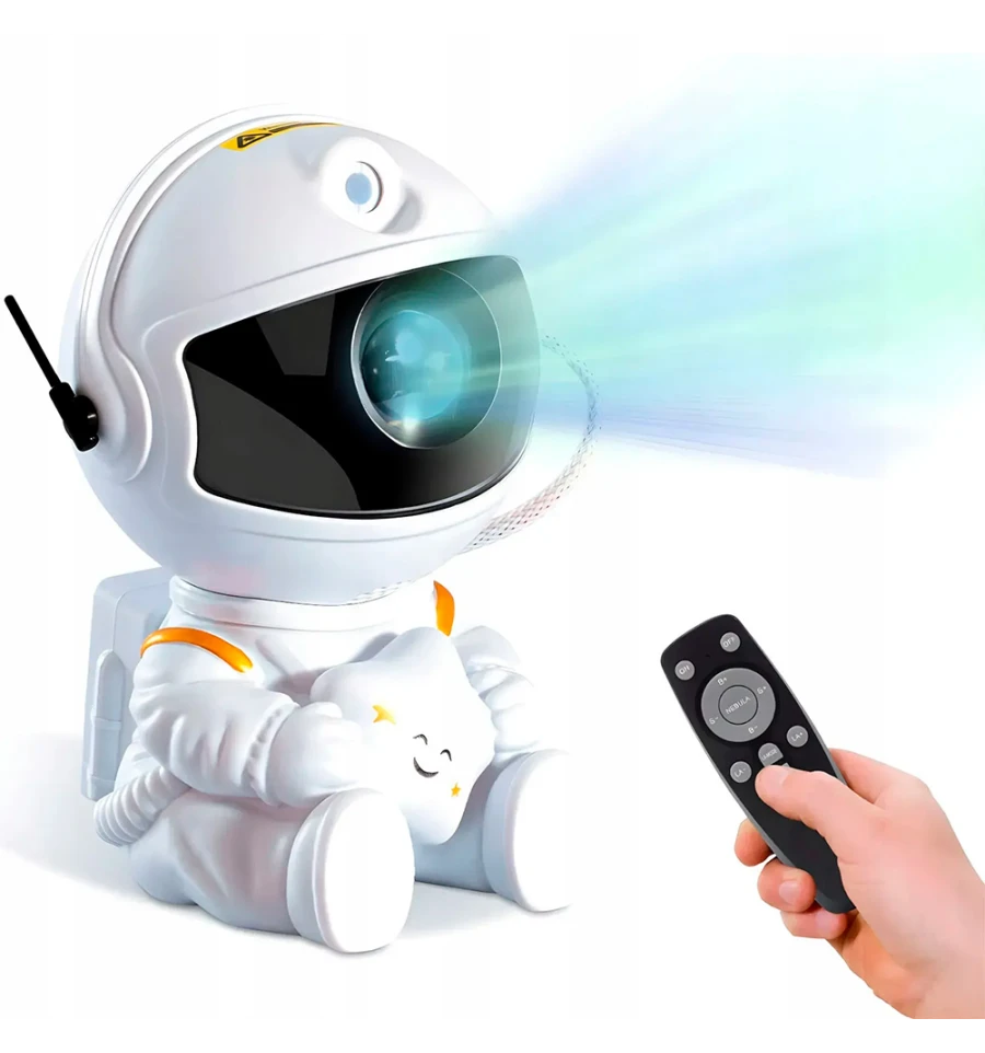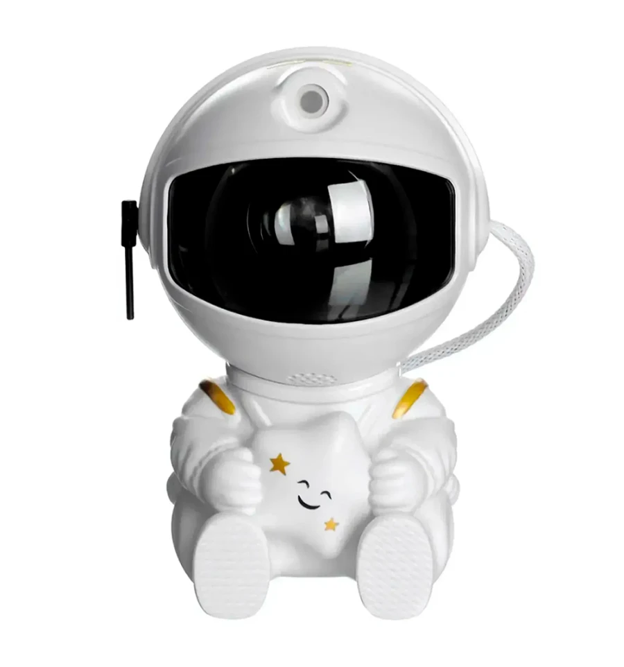 Ночник проектор звездного неба Космонавт от USB с пультом - отличный атрибут для создания атмосферы для сна, для игр, для свидания, для фотосессии, для вечеринок. Благодаря сочетанию лазерной и LED технологий, он воспроизводит реалистичные проекции звезд, галактик и световых эффектов на потолке и стенах. Оригинальный дизайн в виде космонавта придает футуристическому стилю интерьер и станет прекрасным подарком для детей и поклонников космоса. Ночник небольших размеров, а питание осуществляется через USB, поэтому устройство можно подключать к компьютеру, повербанку или адаптеру. Такие свойства делают его очень мобильным. Голова астронавта закреплена на магнитах, что обеспечивает поворот на 360 градусов и соответственно дает возможность выставить расположение проекции так как удобно именно вам (Рекомендуем избегать попадания лазерных лучей в глаза). В комплекте есть пульт дистанционного управления, что позволяет легко управлять ночником удаленно. Но на самом астронавте ночнике тоже есть кнопки для управления. Имеется два вида проекции: Звезды и Туманность. Туманность имеет 7 цветов свечения: 1) переливание из зелёного свечения, 3) зеленое свечение, 4) синее свечение,5) красное свечение, 6) сине-зеленое свечение. Также есть для каждого режима 3 степени яркости и 3 скорости. Звезды 2 режима: мигание и неизменное свечение. Также есть для режима постоянного свечения есть 3 степени яркости, а для мигания – 3 скорости. Различные режимы Туманности и Звезд можно легко комбинировать или поочередно включать/выключать для задания соответствующей атмосферы. Отдельная кнопка на пульте отвечает за таймер отключения при нажатии 1 раз в 45 минут, 2 раза в 90 минут, 3 раза отключение таймера. Смена режимов таймера сопровождается двойным миганием. При длительном зажатии кнопок Звезды или Туманности происходит выключение проекций соответственно. Для переключения режима свечения достаточно одного нажатия на кнопку Туманность (Nebula). Аналогично для проекции звезд. Ночник проектор звездного неба Космонавт от USB с пультом – это сочетание функциональности, стиля и магии света, которое принесет уют и радость в ваш дом!