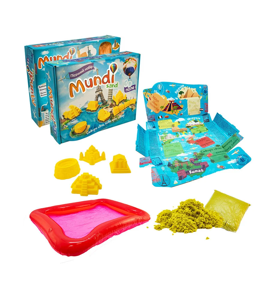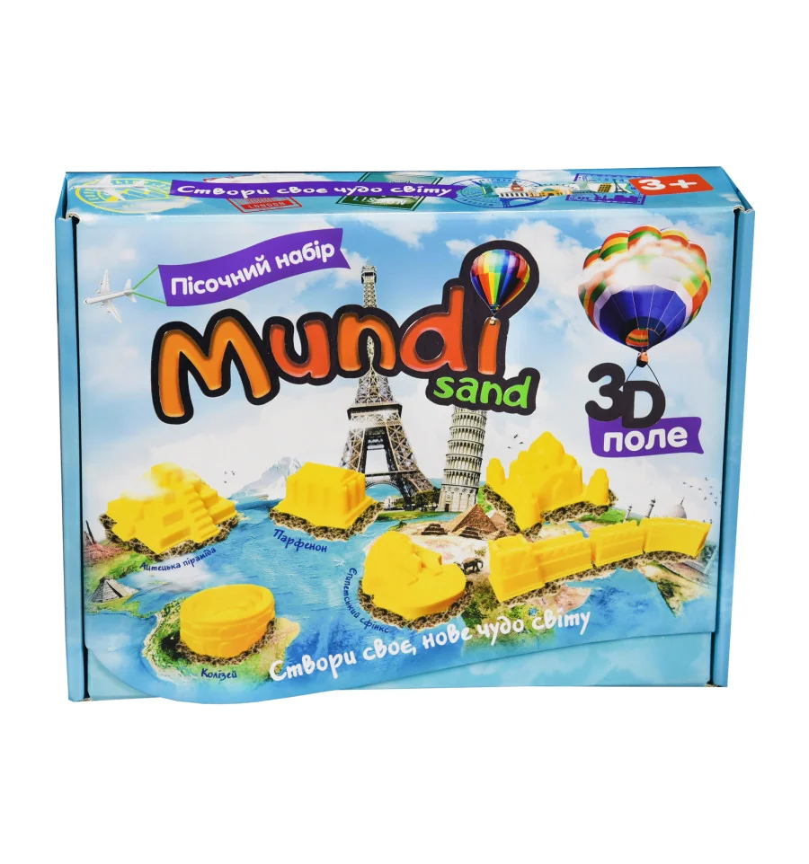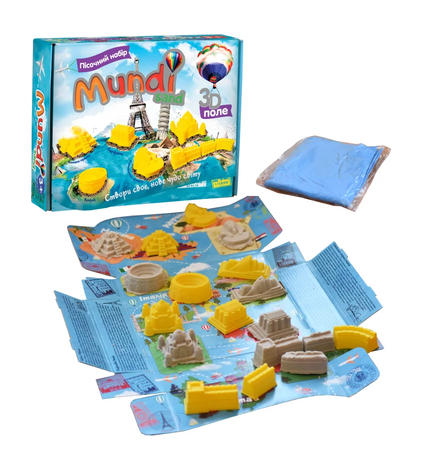 Малышей ждет увлекательное путешествие по земному шару и знакомство с достопримечательностями различных стран на 3D игровом поле. И самое интересное – сами чудеса света и постройки для игры ребенок может вылепить сам! Здания можно построить из кинетического песка – в наборе упаковка в 1 кг этого удивительного материала.