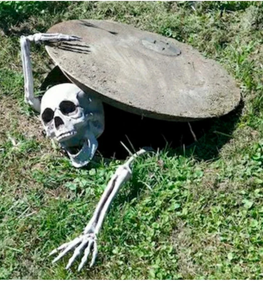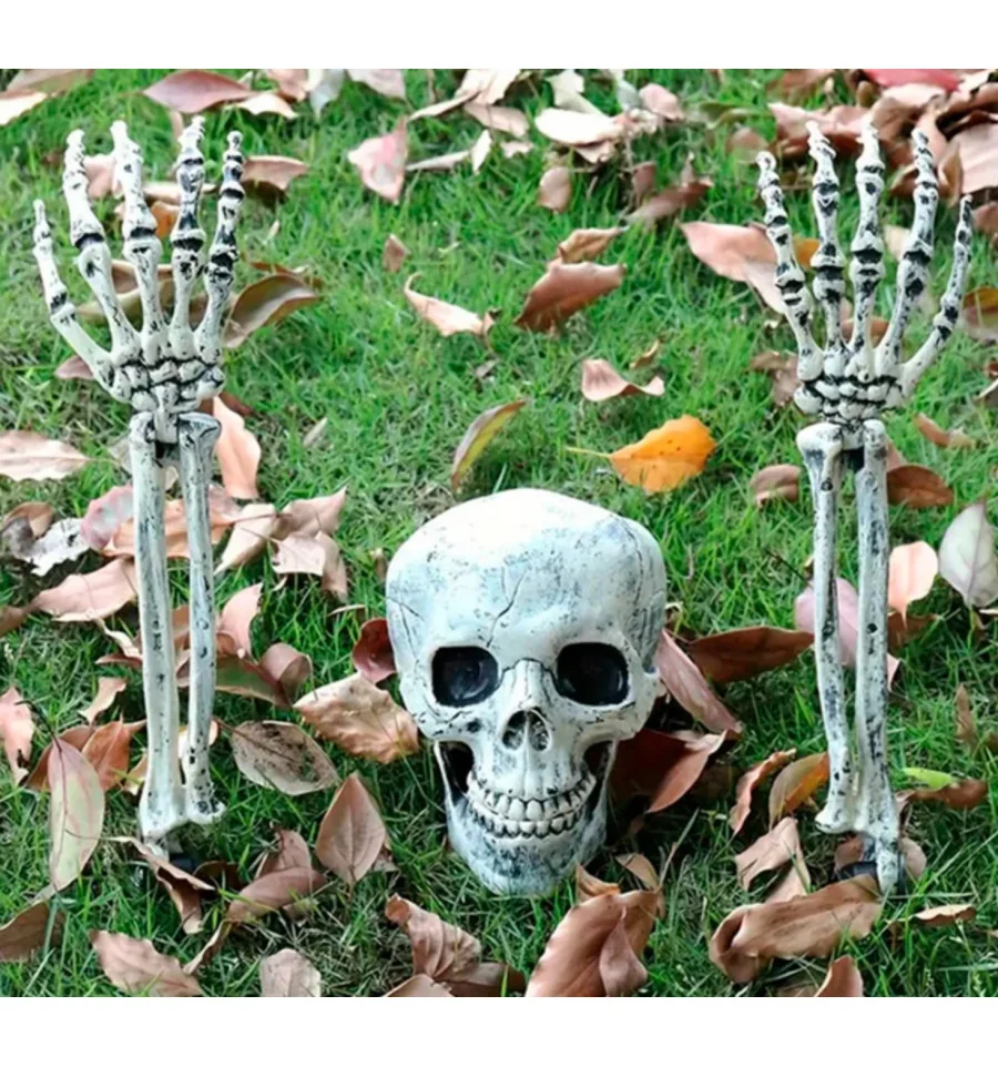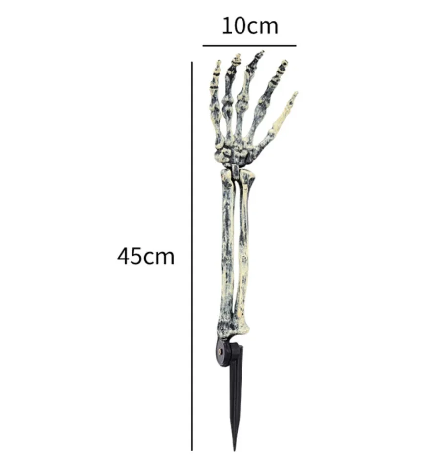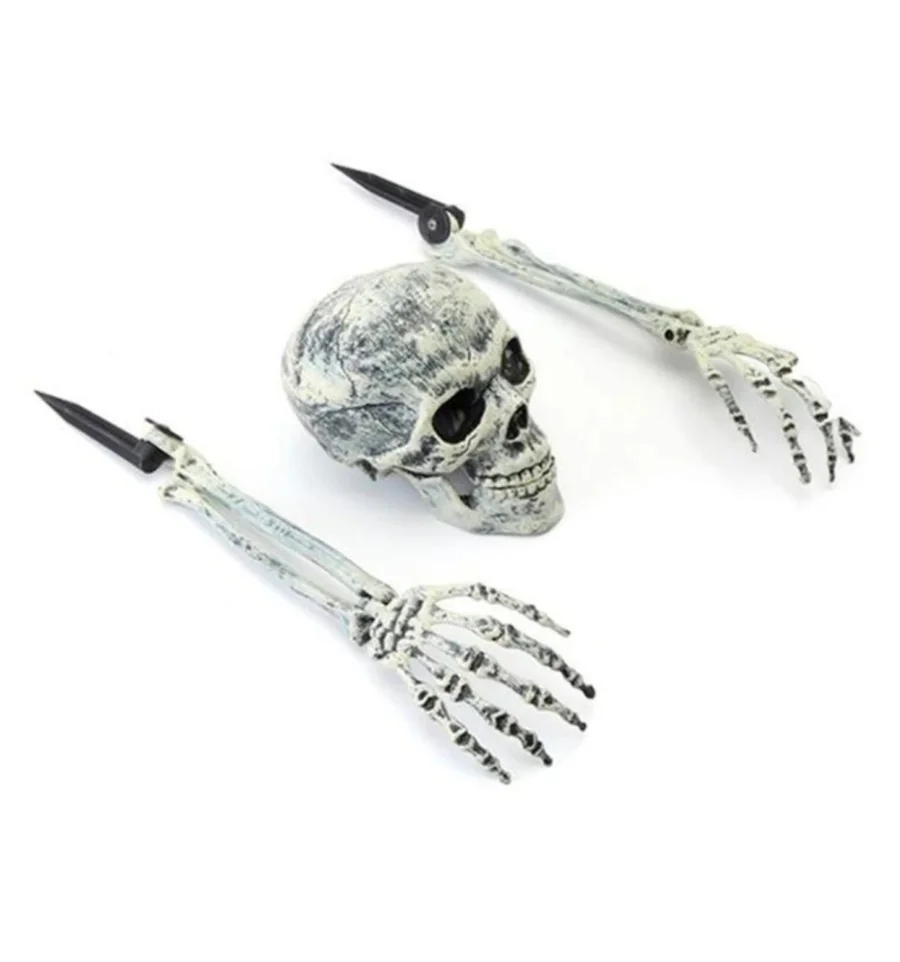 Размеры: Руки: 45х10см - 2шт (вставляется в землю на 10см), Череп: 19х16х12см (челюсть подвижная)