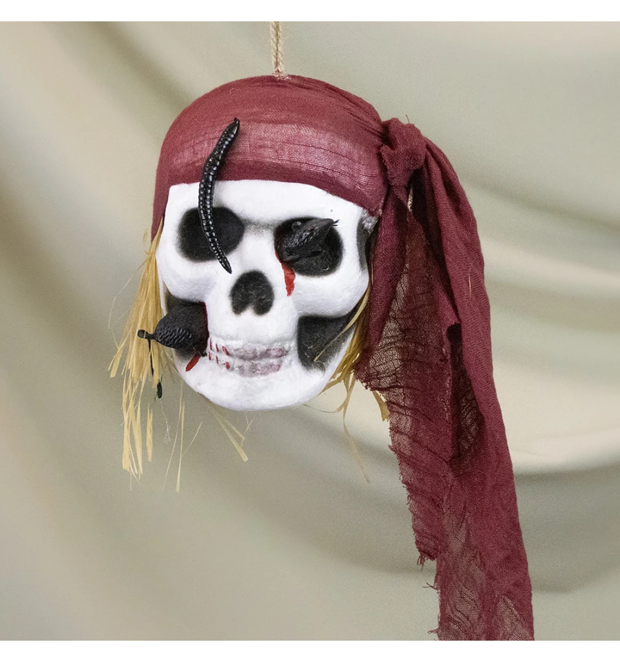 Декор подвесной череп Пират 13800 (бордовый) - украшение на Хэллоуин из серии подвесного пиратского декора на Хэллоуин. Череп пирата изготовлен из пенополистирола, бондана - марлевка цвета бордо. Особого шарма готическому пиратскому черепу придает проходящая мышь сквозь череп через скулу и глазницу. Идеально подходит для украшения арт-пространства клуба, фото зоны на Хэллоуин или пиратскую вечеринку. Просто повесьте на дверь или стену, чтобы удивить ваших гостей во время праздника Дня всех мертвых. Рекомендуем к этому подвесному черепу готическому еще паутину и череп светильник, которые помогут Вам воссоздать мистическую атмосферу. Интернет-магазин PrazdnikShop предлагает купить висячие украшения для дома с привидениями по лучшим ценам в Украине.