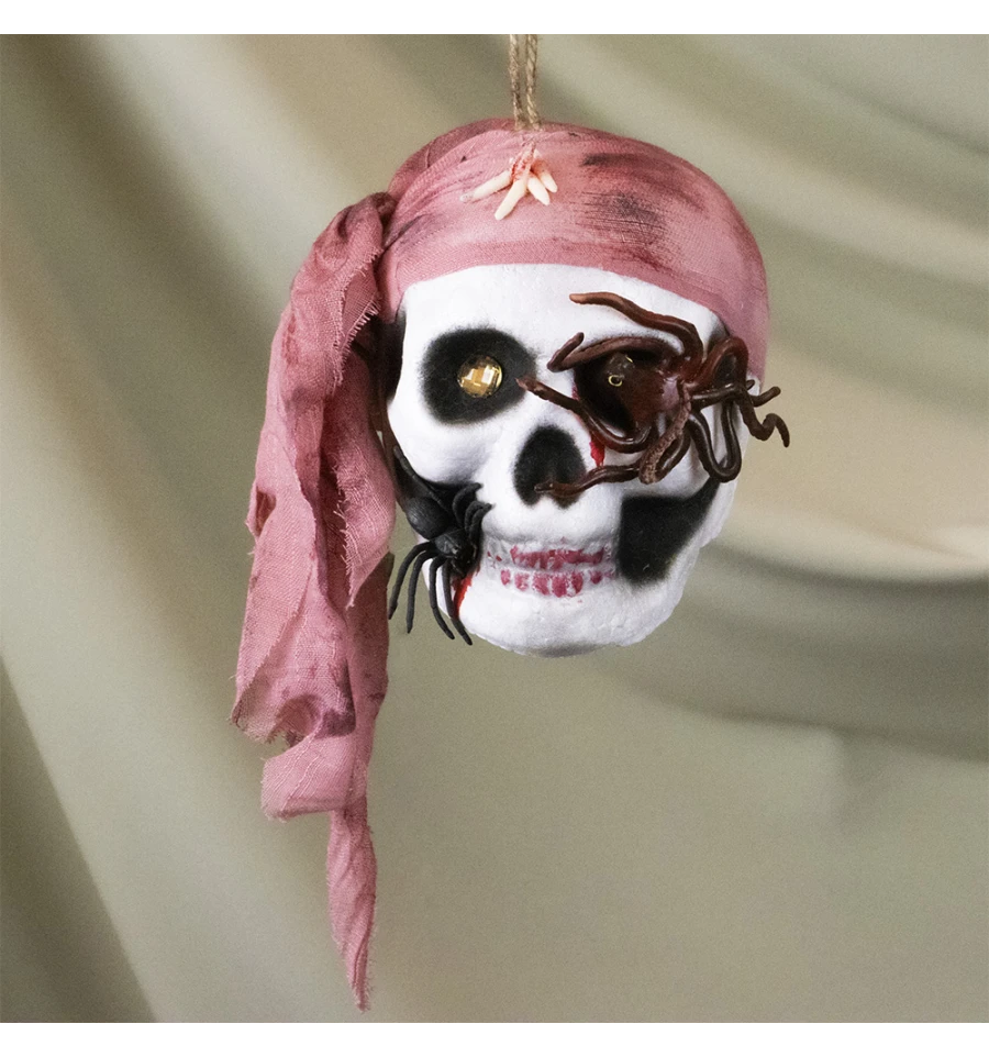 Декор подвесной череп Пират Крюк 13798 (пепел розы) - украшение на Хэллоуин из серии подвесного декора с петелькой для подвешивания на вечеринку в стиле Santa Muerte или Хэллоуин. Череп пирата изготовлен из качественного материала, который не рассыпается, пенополистирола, бондана - марлевка цвета бордо. Особого шарма готическому пиратскому черепу придает осьминог, который будь-то вылазит из глазницы. А золотой глаз кристалл будет эффектно переливатся при попадании света. Идеально подходит для украшения арт-пространства клуба, фото зоны на Хэллоуин или пиратскую вечеринку. Просто повесьте на дверь или стену, чтобы удивить ваших гостей во время праздника Дня всех мертвых. Также декор можно поставить на стол, бар или другую локацию. Рекомендуем к этому подвесному черепу готическому еще паутину и череп светильник, которые помогут Вам воссоздать мистическую атмосферу. Интернет-магазин PrazdnikShop предлагает купить висячие украшения для дома с привидениями по лучшим ценам в Украине.