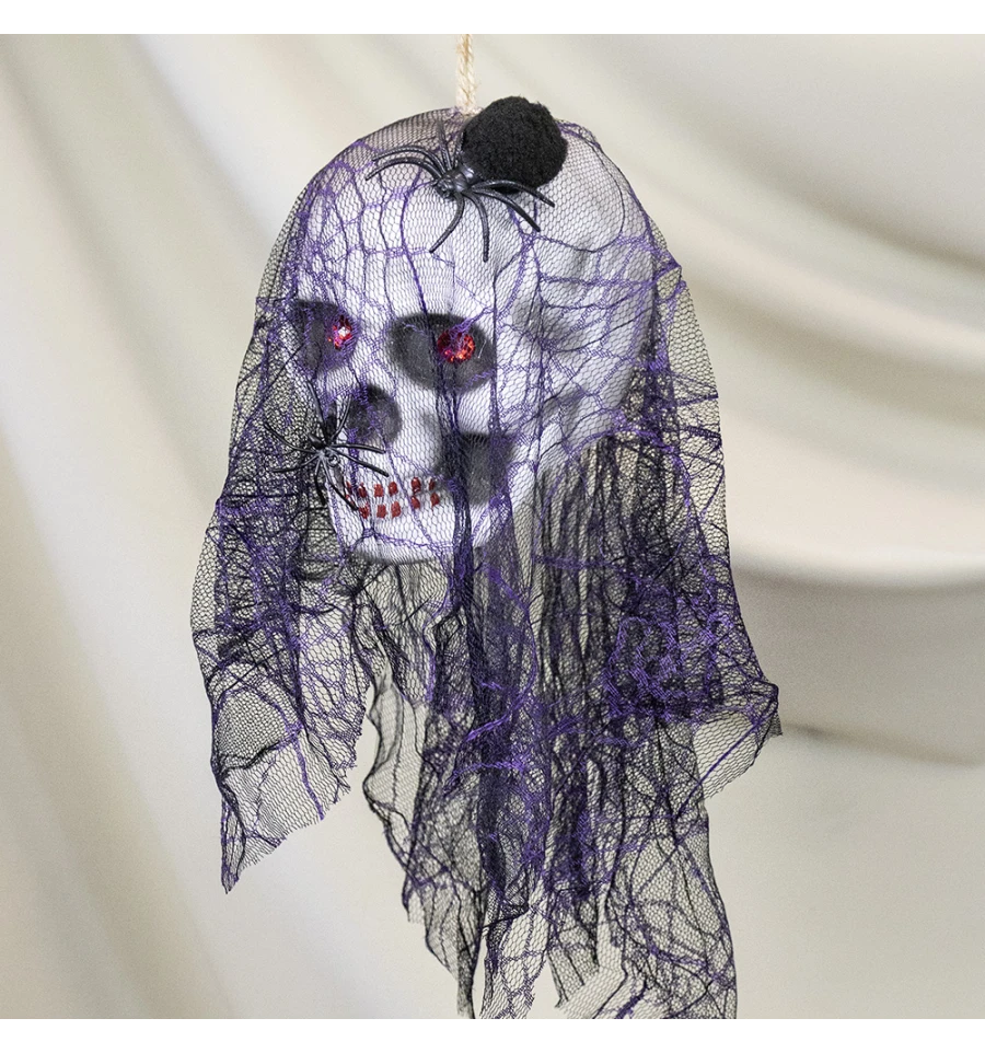 Декор подвесной череп Черная вдова 13806 (черный с фиолетовым) - украшение на Хэллоуин из серии подвесного пиратского декора на Хэллоуин. Череп пирата изготовлен из пенополистирола, бондана - марлевка цвета бордо. Особого шарма готическому пиратскому черепу придает проходящая мышь сквозь череп через скулу и глазницу. Идеально подходит для украшения арт-пространства клуба, фото зоны на Хэллоуин или пиратскую вечеринку. Просто повесьте на дверь или стену, чтобы удивить ваших гостей во время праздника Дня всех мертвых. Рекомендуем к этому подвесному черепу готическому еще паутину и череп светильник, которые помогут Вам воссоздать мистическую атмосферу. Интернет-магазин PrazdnikShop предлагает купить висячие украшения для дома с привидениями по лучшим ценам в Украине.