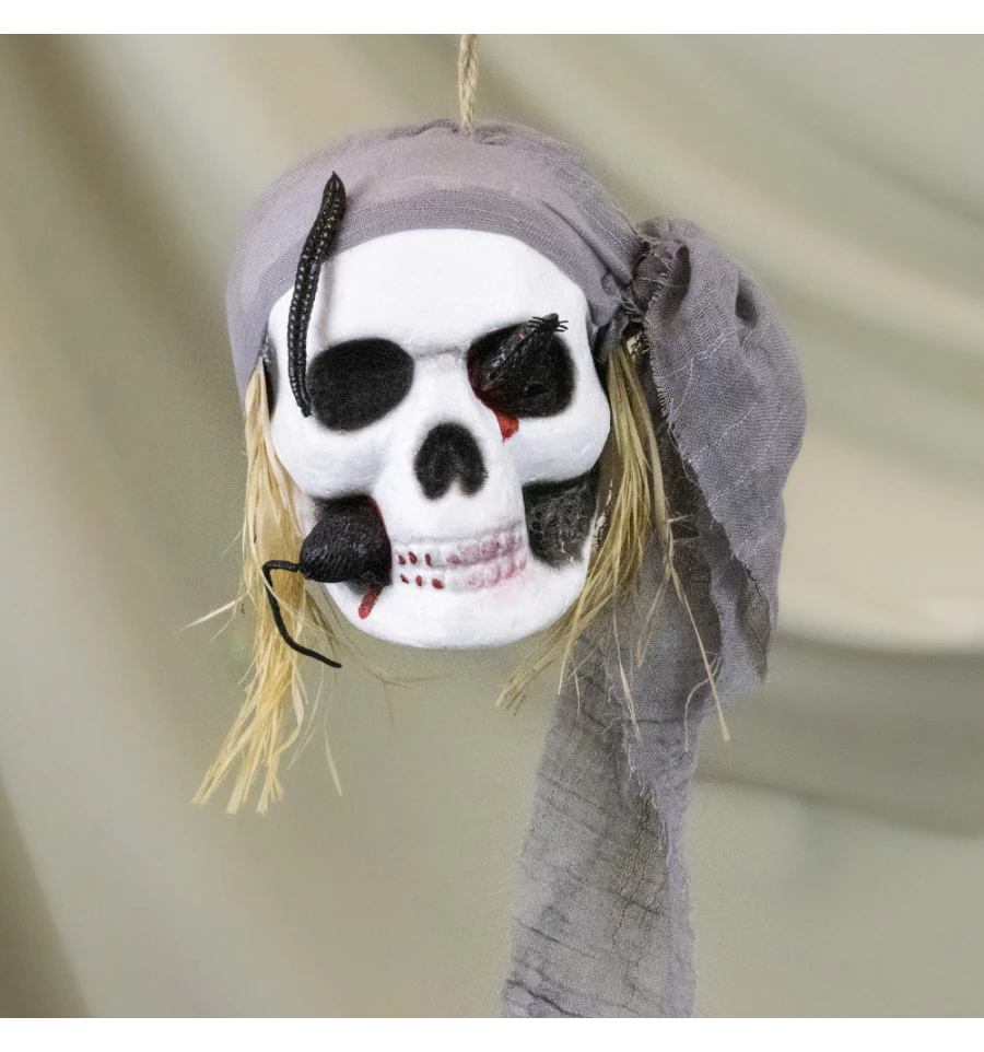 Декор підвісний череп Пірат 13803 (серый) - украшение на Хэллоуин из серии подвесного пиратского декора на Хэллоуин. Череп пирата изготовлен из пенополистирола, бондана - марлевка цвета бордо. Особого шарма готическому пиратскому черепу придает проходящая мышь сквозь череп через скулу и глазницу. Идеально подходит для украшения арт-пространства клуба, фото зоны на Хэллоуин или пиратскую вечеринку. Просто повесьте на дверь или стену, чтобы удивить ваших гостей во время праздника Дня всех мертвых. Рекомендуем к этому подвесному черепу готическому еще паутину и череп светильник, которые помогут Вам воссоздать мистическую атмосферу. Интернет-магазин PrazdnikShop предлагает купить висячие украшения для дома с привидениями по лучшим ценам в Украине.