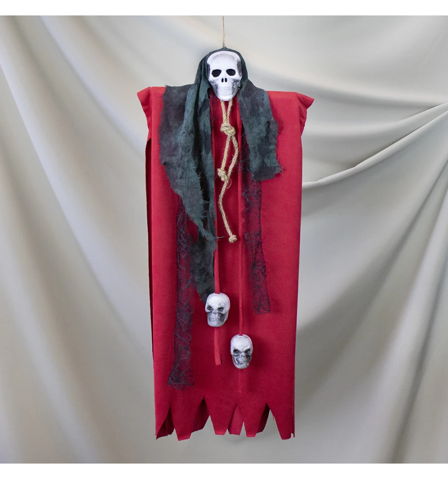 Декор для хэллоуина Призрачный Череп (95см) красный с зеленым 13791 - украшение на Хэллоуин из серии подвесного декора с петелькой для подвешивания на вечеринку в стиле Santa Muerte или Хэллоуин. Призрачный Череп изготовлен из качественного материала, который не рассыпается, пенополистирола, балахон-искусственный трикотаж, косынка-сатин. Особого шарма висячей смерти придают сочетание шпагата на шее с гипюром и черепами. Идеально подходит для украшения арт-пространства клуба, фото зоны на Хэллоуин. Впечатляюще подвесной декор выглядит в клубах при освещении флуоресцентными лампами - белый цвет черепов и балахона светится. Просто повесьте на дверь или стену, чтобы удивить ваших гостей во время праздника Дня всех мертвых. Рекомендуем к этому готическому подвесному черепу еще паутину, которая поможет Вам воссоздать мистическую атмосферу. Интернет-магазин PrazdnikShop предлагает купить висячие украшения для дома с привидениями по лучшим ценам в Украине.