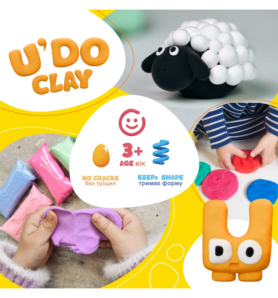 Используй его для создания игрушек, декора или веселых экспериментов. Идеально подходит для детей от 3 лет и всех, кто любит творить. U'DO CLAY – сотвори мир своими руками!