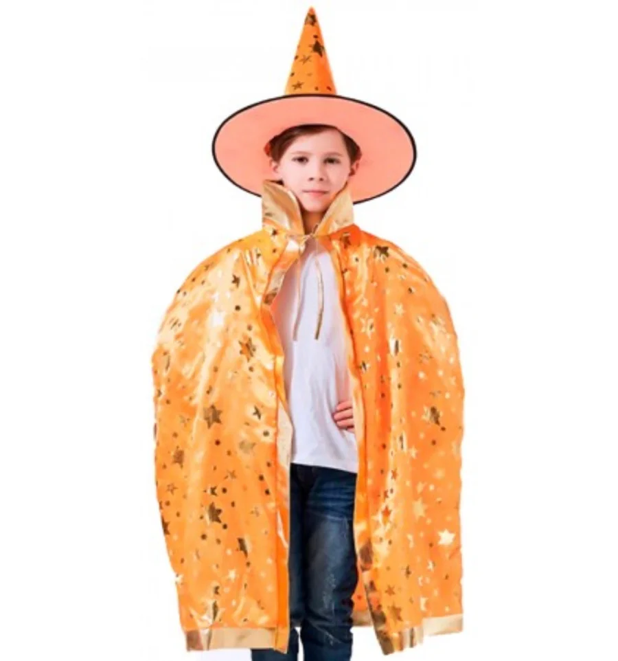 Характеристики: высота колпака 38см, диаметр колпака с полями: 42см, длина плаща: 80см, в комплект входит: колпак, плащ