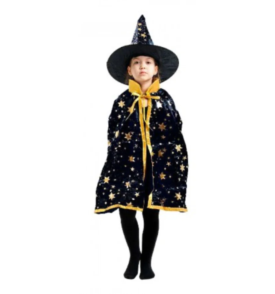 Характеристики: высота колпака 38см, диаметр колпака с полями: 42см, длина плаща: 80см, в комплект входит: колпак, плащ