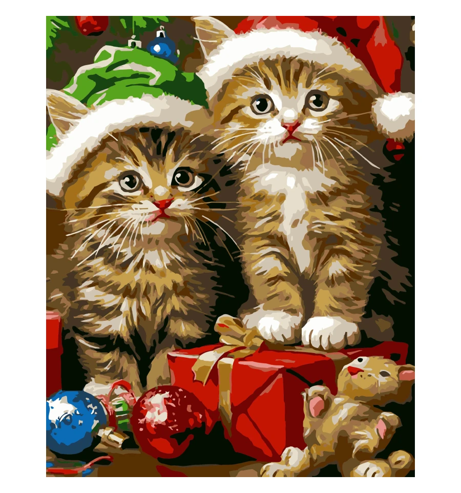 Картина по номерам Новогодние котики размером 40х50 см (VG011)Картины по номерам от украинского производителя объединяют творчество с игрой. Они развивают фантазию, улучшают память и мелкую моторику. А процесс рисования снижает тревогу и снимает стресс.