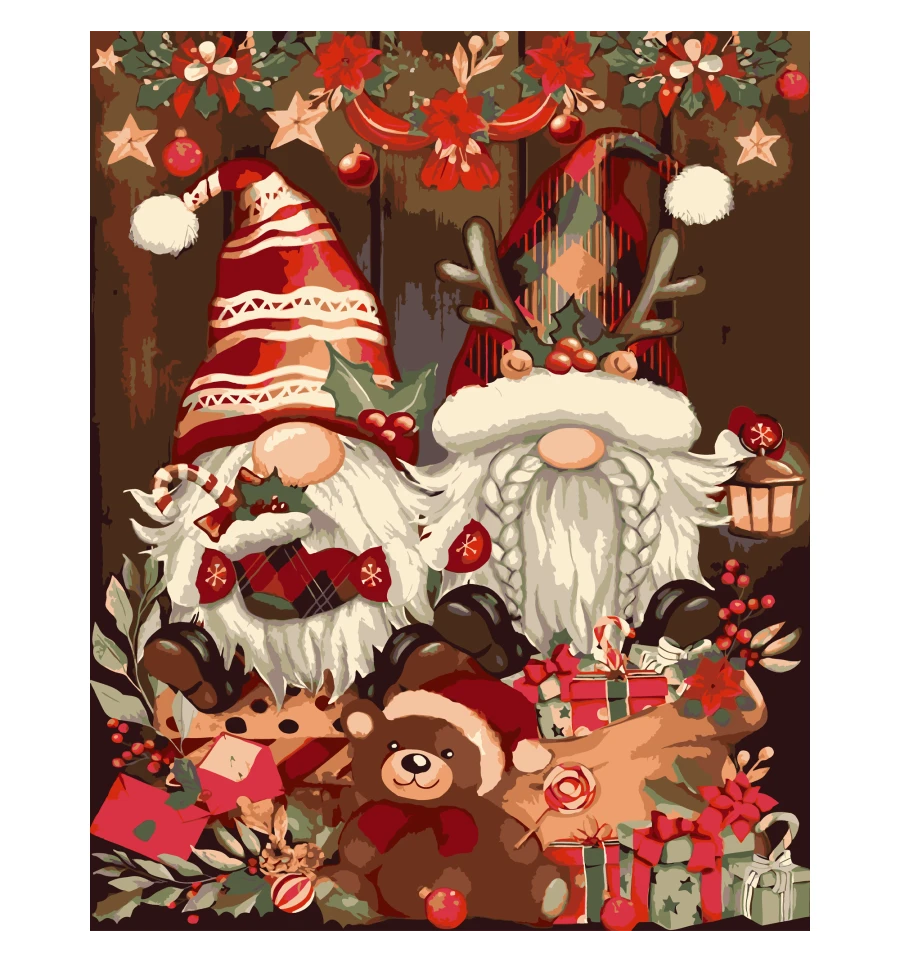 Картина по номерам Праздничные гномы размером 40х50 см (VG016)Картины по номерам от украинского производителя объединяют творчество с игрой. Они развивают фантазию, улучшают память и мелкую моторику. А процесс рисования снижает тревогу и снимает стресс.