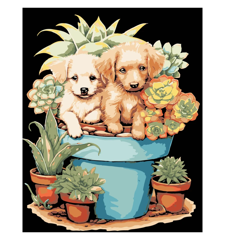 Картина по номерам ПРЕМИУМ Щенки на черном фоне размером 40х50 см (AH1192-16)Картины по номерам от украинского производителя объединяют творчество с игрой. Они развивают фантазию, улучшают память и мелкую моторику. А процесс рисования снижает тревогу и снимает стресс.