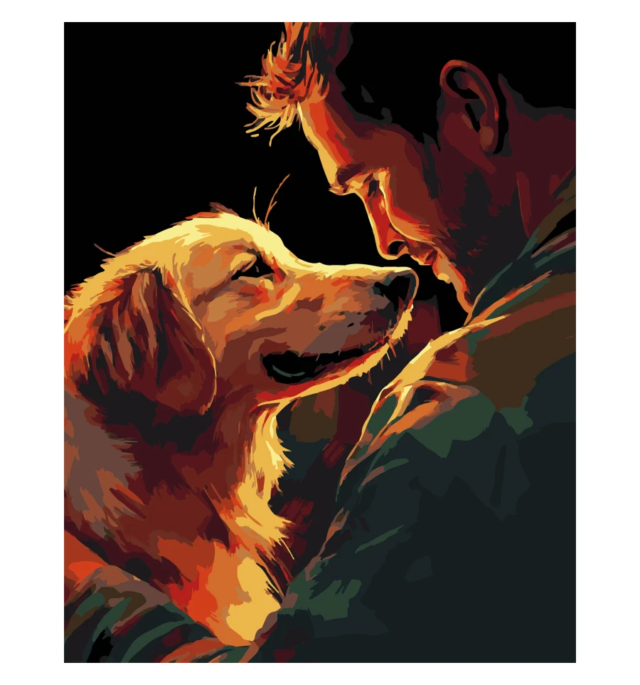 Картина по номерам ПРЕМИУМ Человек и пес на черном фоне размером 40х50 см (AH1181-19)Картины по номерам от украинского производителя объединяют творчество с игрой. Они развивают фантазию, улучшают память и мелкую моторику. А процесс рисования снижает тревогу и снимает стресс.