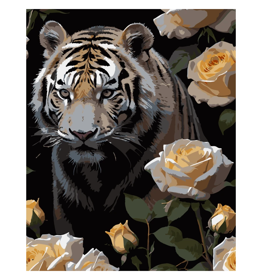 Картина по номерам ПРЕМИУМ Тигр в розах на черном фоне размером 40х50 см (AH1180-19)Картины по номерам от украинского производителя объединяют творчество с игрой. Они развивают фантазию, улучшают память и мелкую моторику. А процесс рисования снижает тревогу и снимает стресс.
