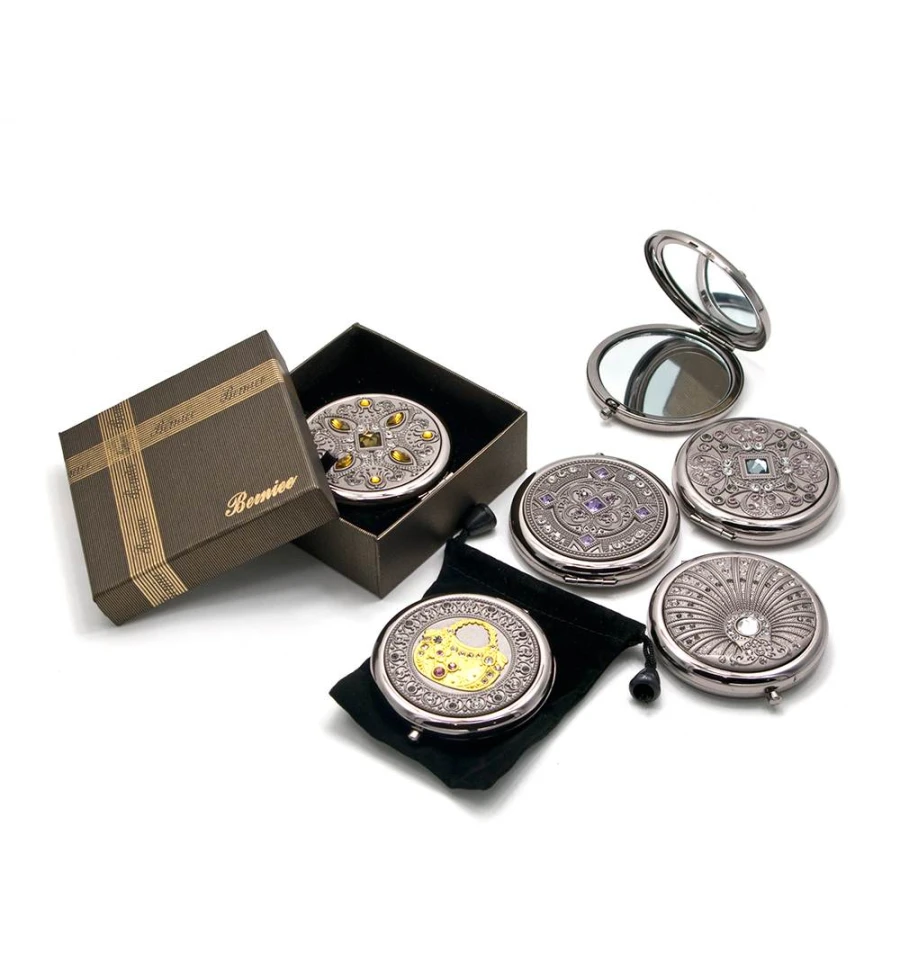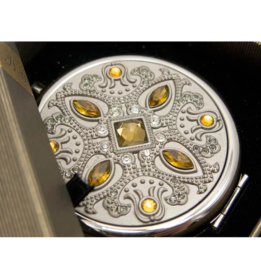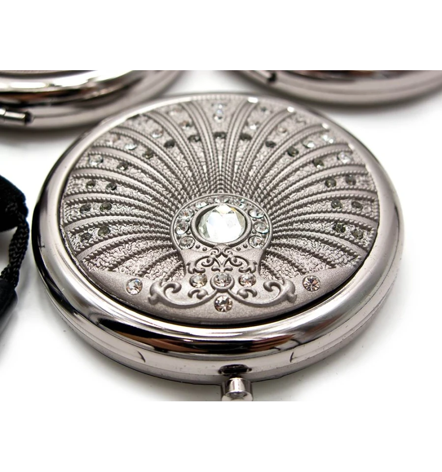 Зеркальце косметическое «Узор с камнями» «хром» (d-7 см) (в коробке + чехольчик)