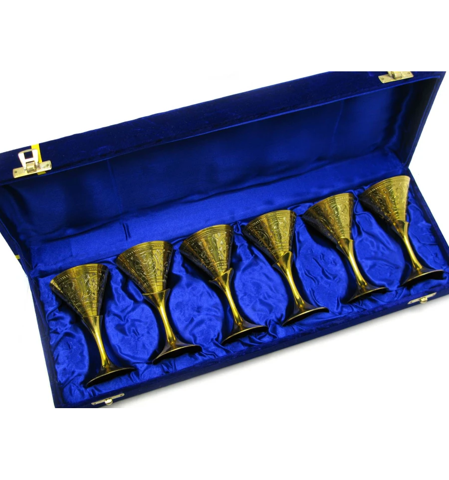 Рюмки бронзовые позолоченные (н-р 6 шт./50мл) (h-11 см) (43×15×8 см) купить в интернет магазине подарков ПраздникШоп