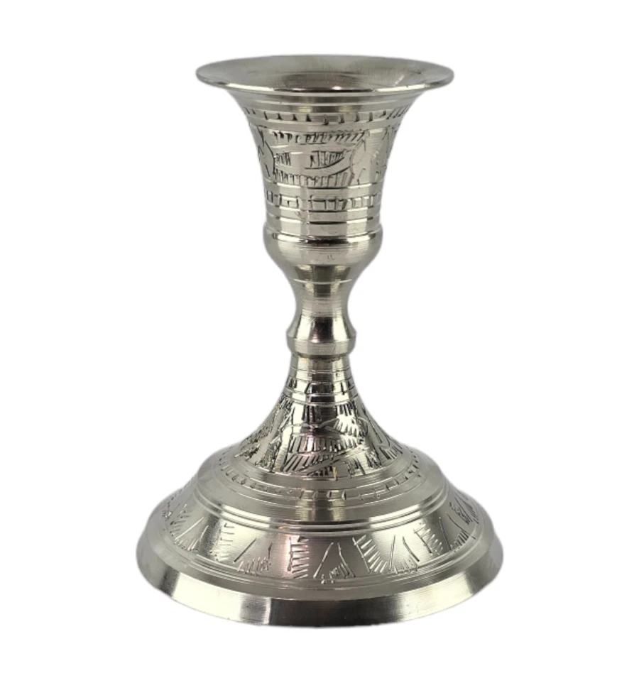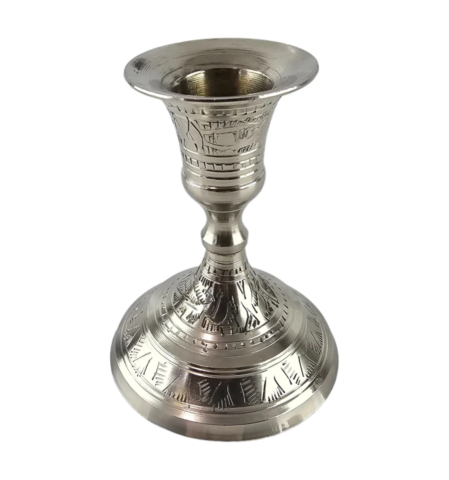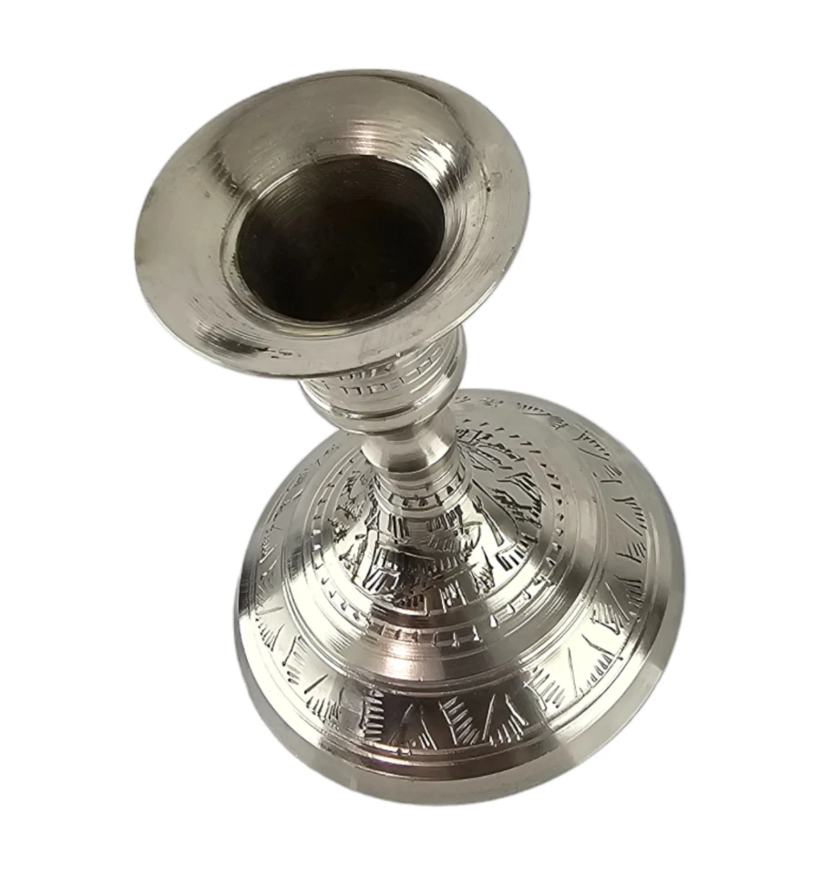 Этот подсвечник - воплощение мастерства индийских ремесленников, которые привнесет экзотичности в ваш интерьер. Изготовлен из бронзы, дополненной хромированным покрытием. Обратите внимание, что этот подсвечник - результат ручного труда, что придает ему неповторимости и уникального характера.