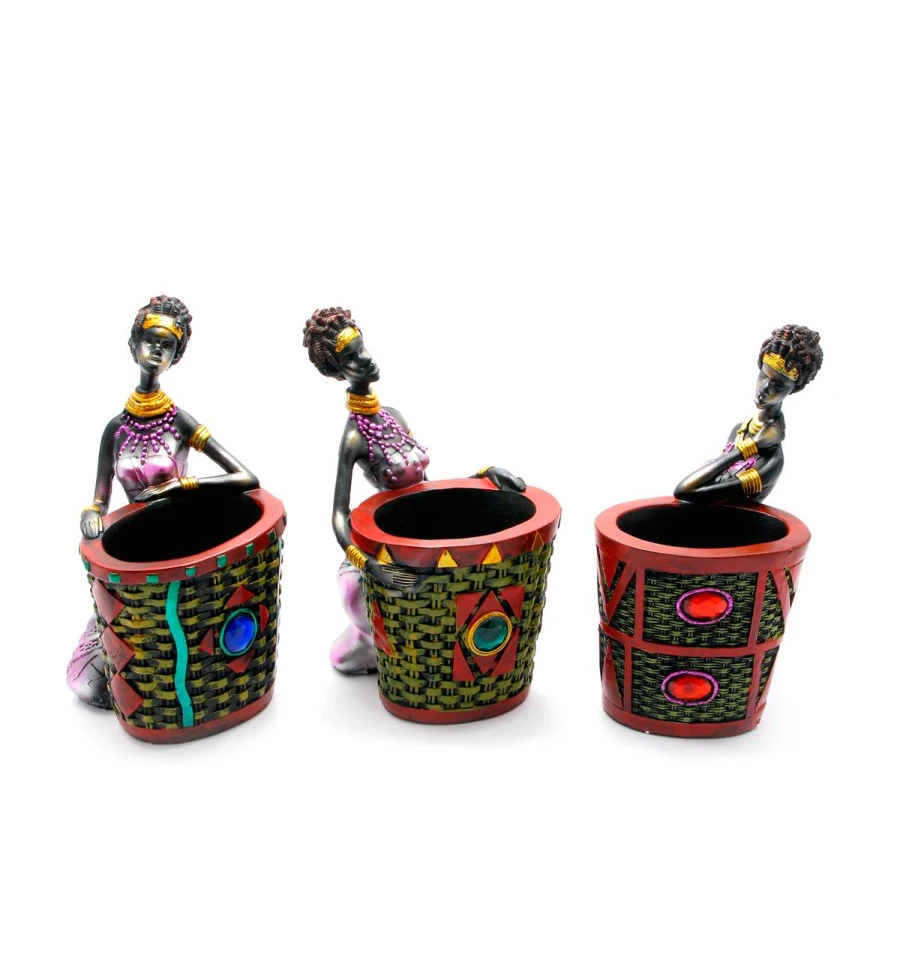 Африканка с корзиной, подставка под ручки (17×8.5×8 см)