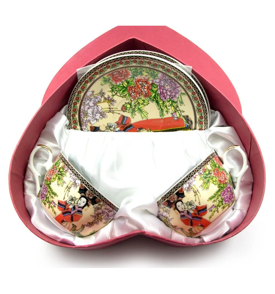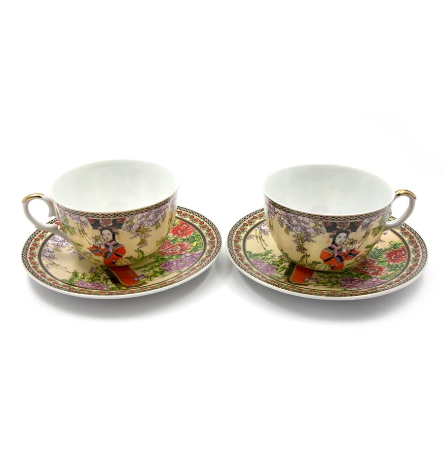 Сервиз фарфор сердце (2JBS126) 2 чашки +2 блюдца «Гейша» (210 мл) (h-6 см,d-10 см,d блюдца-15 см)