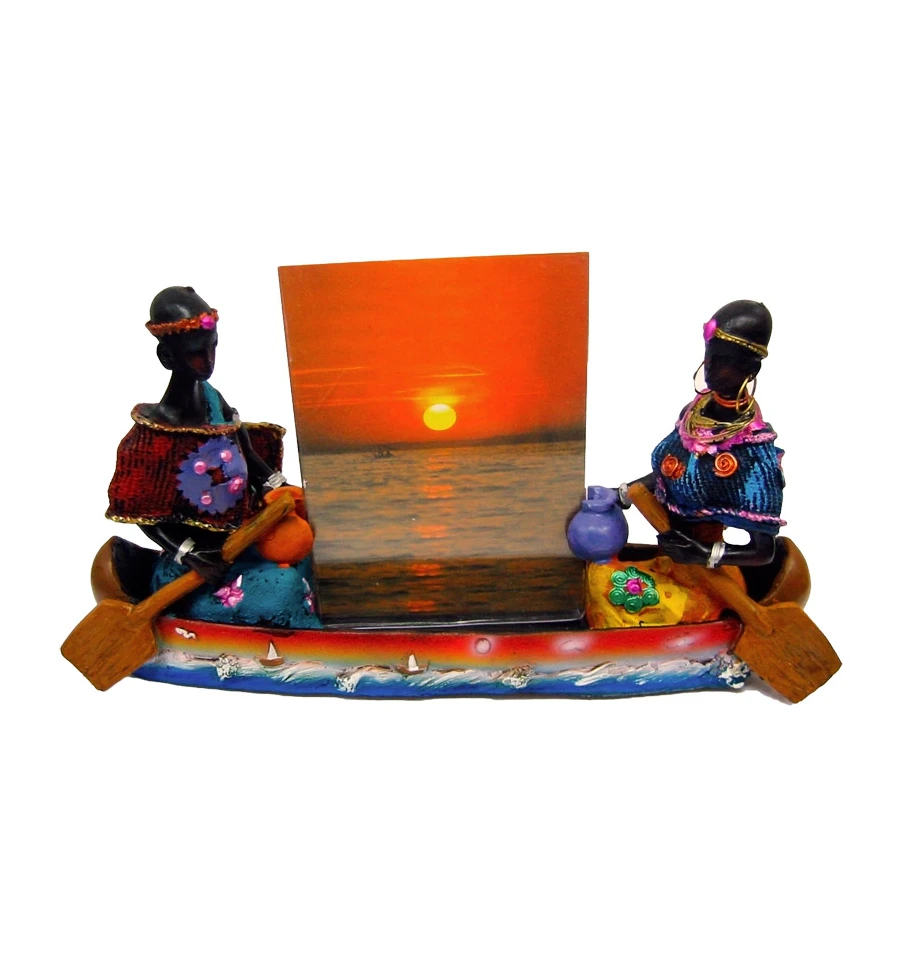 Африканцы в лодке с фоторамкой (19×11.5×5 см)