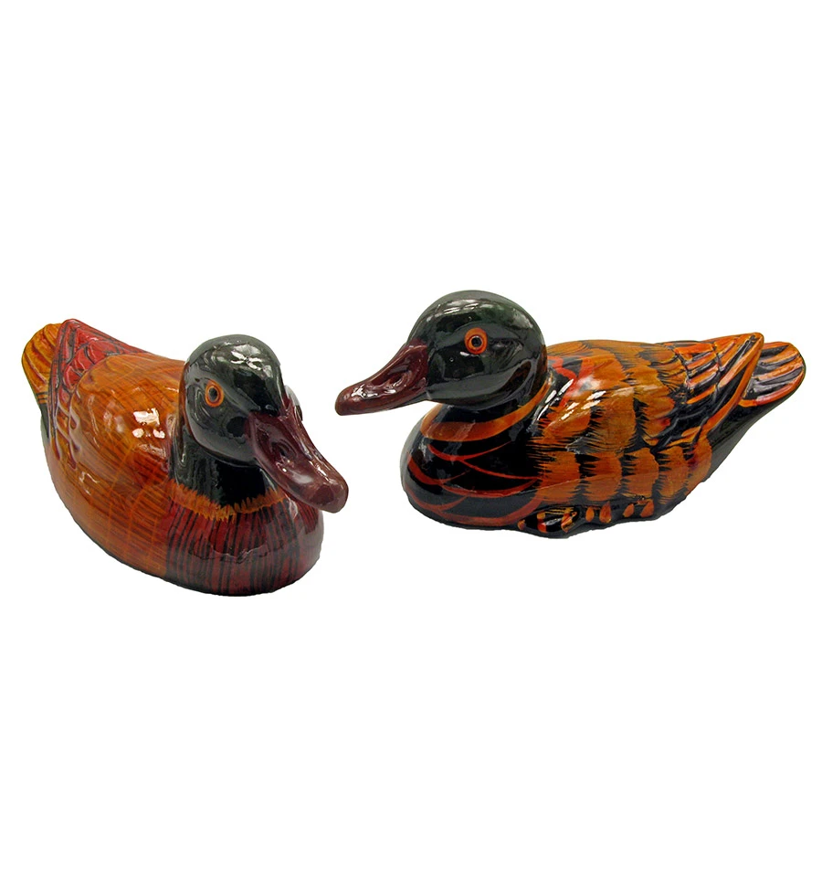 У нас в наличии цветные утки мандаринки в паре, каждая утка имеет размер около 13 см. Эти милые и яркие утки будут прекрасным дополнением к вашей коллекции или интерьеру.