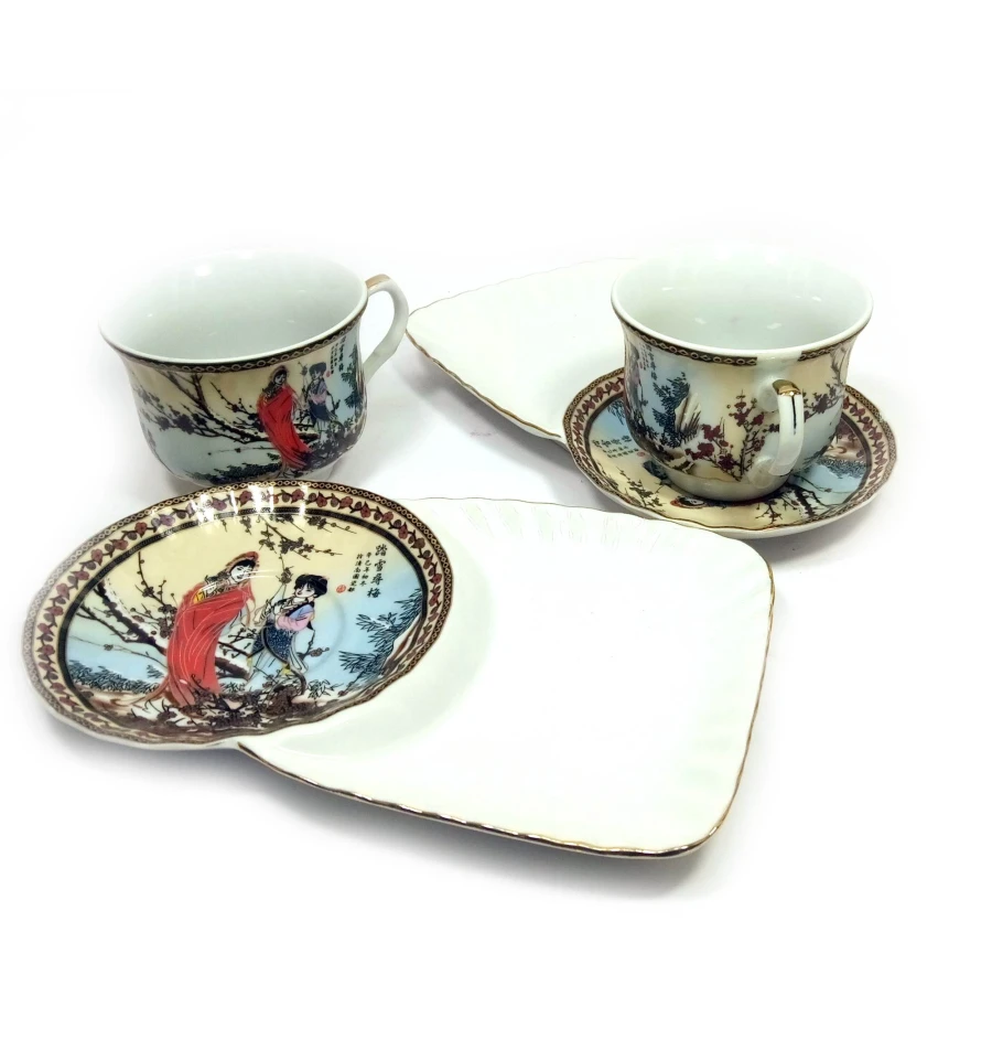 Сервиз фарфор (170 мл) (2C102) 2 чашки + 2 блюдца «Сакура» (h-6.5 см,d-8.5 см, блюдце 21×12 см)