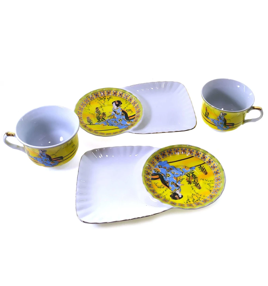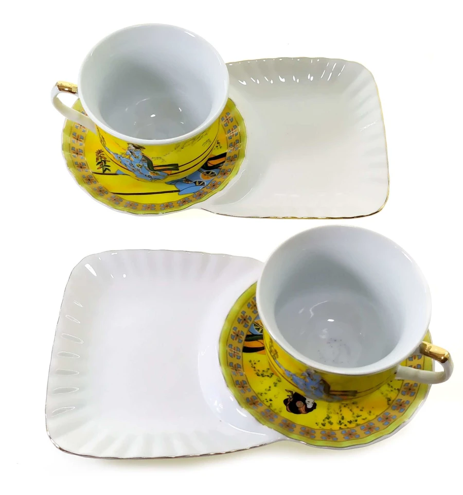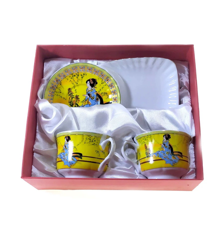 Сервиз фарфор (170 мл) (2C141-4) 2 чашки + 2 блюдца «Китаянка» (h-6.5 см,d-8.5 см, блюдце 21×12 см)