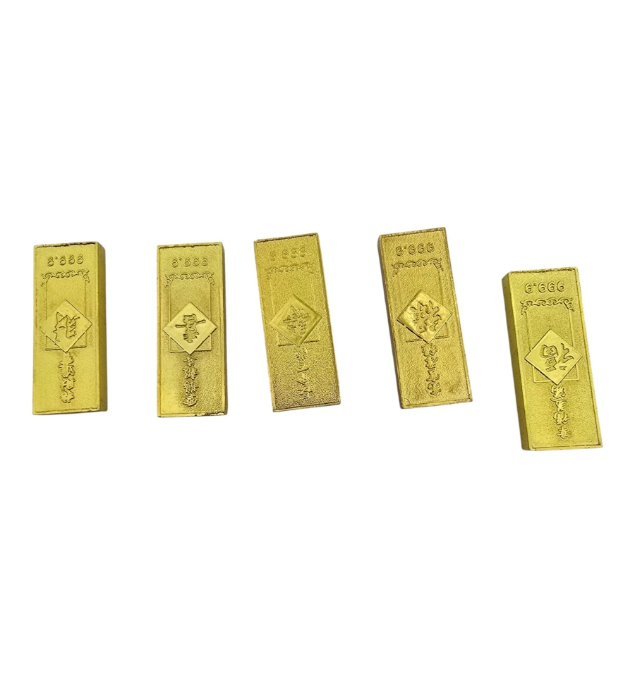 Теги: золотой слиток, декоративный слиток, набор слитков, китайский сувенир, символ богатства, декор фэншуй, китайский новый год, декор стола, подарок в офис, реквизит для фото, сувенир золото, восточный антураж