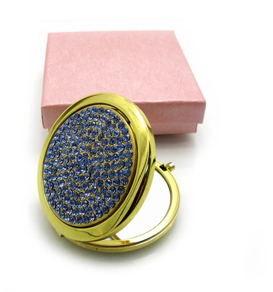 Зеркальце косметическое «Стразы» золото 18583 «Синий» (в коробке + чехольчик) купить в интернет магазине подарков ПраздникШоп