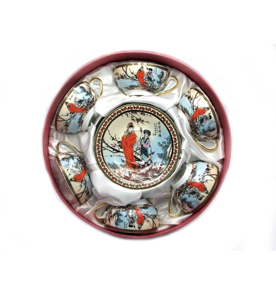 Сервиз круглый фарфор (70мл) (6CCS102) 6 чашек+ 6 блюдец «Сакура» (h-4 см купить в интернет магазине подарков ПраздникШоп