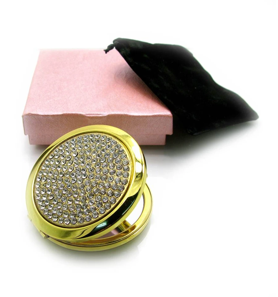 Зеркальце косметическое «Стразы» золото 18583 «Белый» (в коробке + чехольчик) купить в интернет магазине подарков ПраздникШоп
