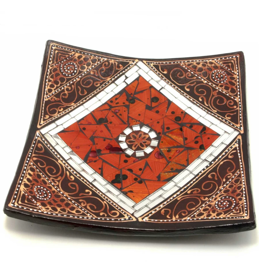 Блюдо терракотовое с мозаикой (19×19×4 см) A