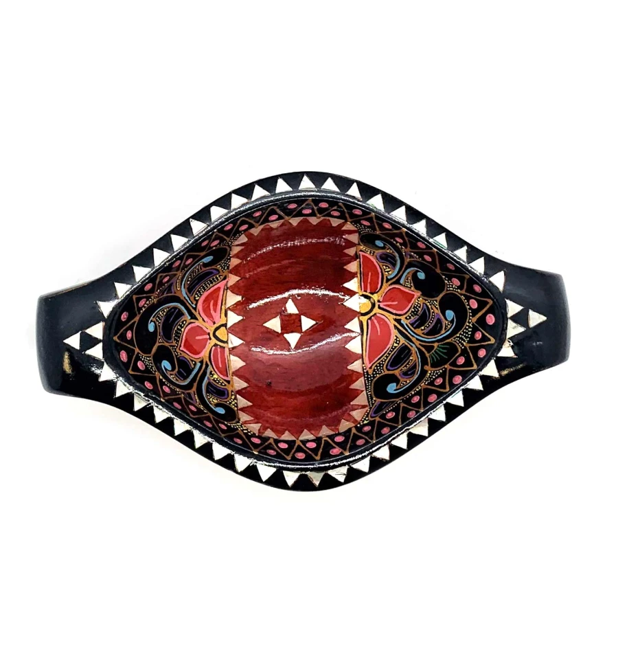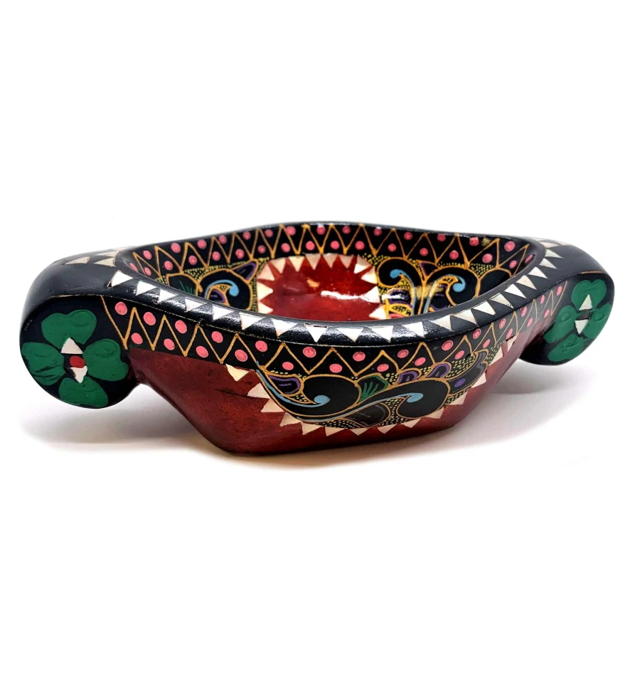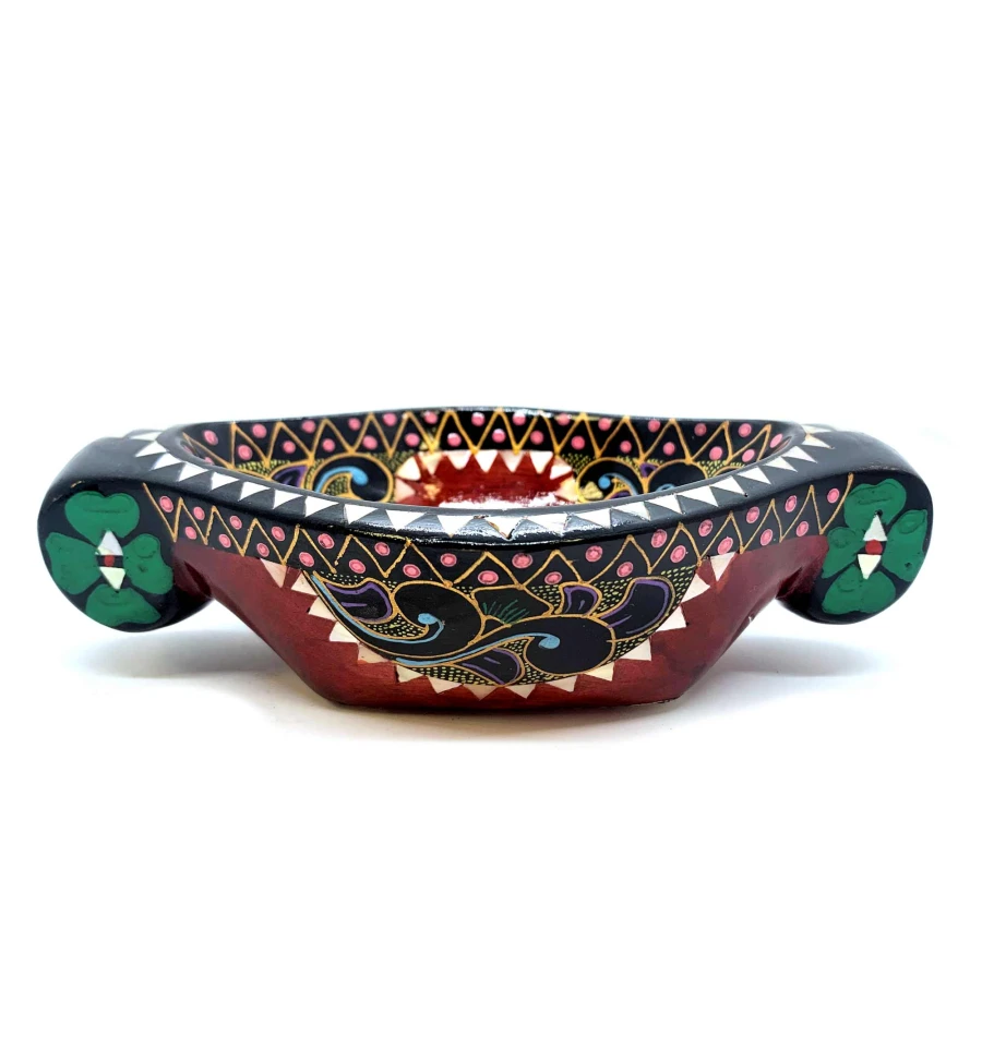 Это восхитительное блюдо для фруктов выполнено вручную в Индонезии на острове Ломбок из цельного дерева и инкрустировано перламутром. Оно имеет яркий красный цвет и украшено росписью вручную с изображением красивых цветов. Размер этого блюда составляет 16 х 10 х 4.5 см, что делает его идеальным для сервировки фруктов и других лакомств. Это красивое и функциональное изделие станет прекрасным дополнением к вашему декору и прекрасным подарком для любителей уникальных предметов.