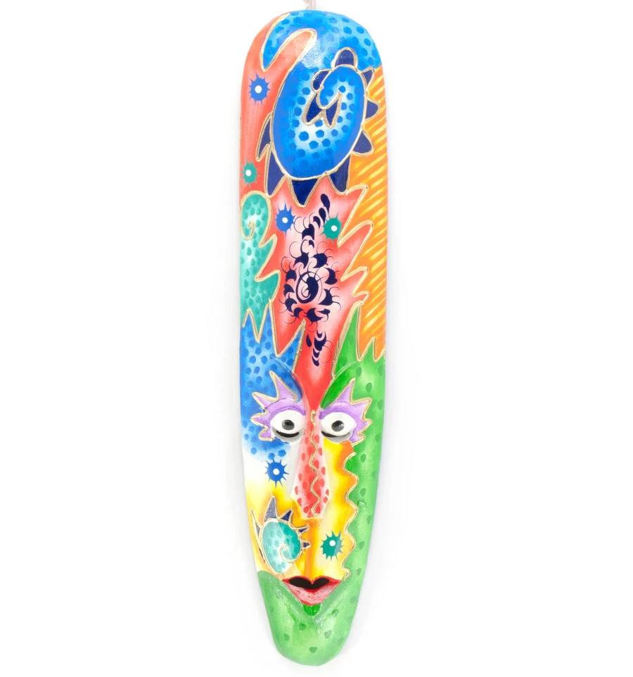 Индонезия находится в тропическом раю. Индонезийцы позитивные, улыбчивые люди. Творения, сделанные их руками, несут энергию: солнца, вечного лета, теплого моря, тропической буйной растительности и позитива. Маска станет интересным подарком и украшением любого интерьера и создаст в доме атмосферу уюта и тепла.