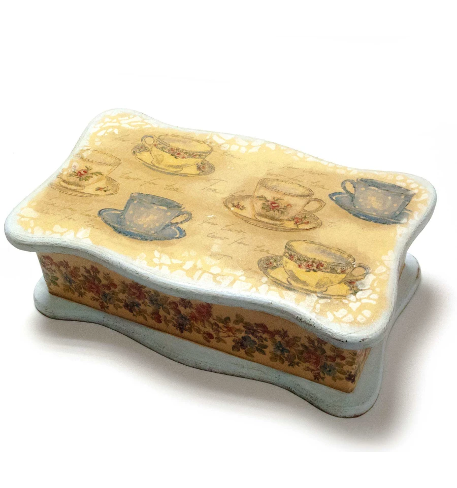 Шкатулка для чайных пакетов «Чашки» (26.5×15.5×9.5) ольха, липа, массива дерева
