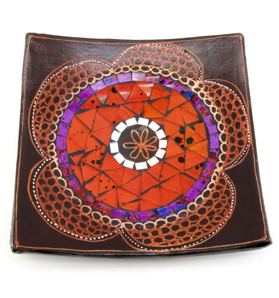 Блюдо терракотовое с мозаикой (19×19×4 см) B
