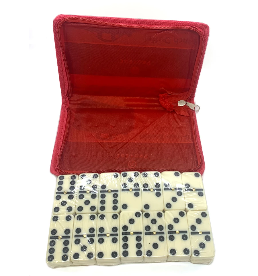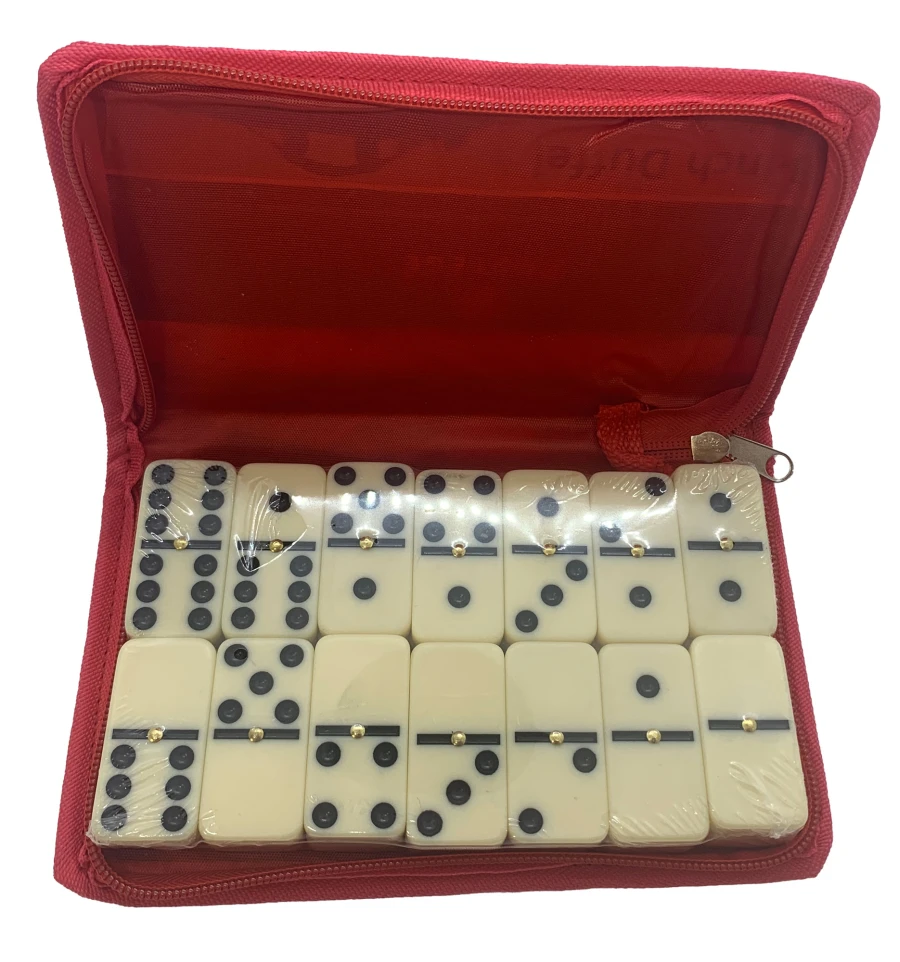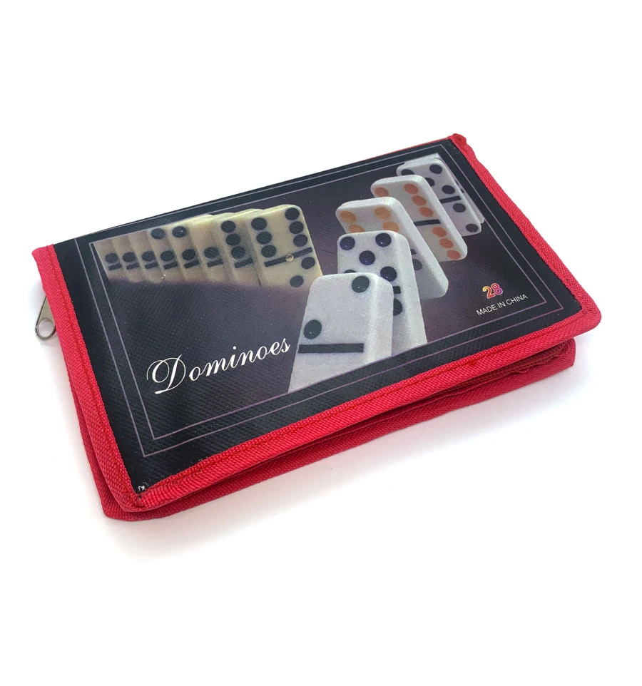 Компактный дизайн: Мягкий футляр красного цвета с молнией прекрасно защищает домино от повреждений и пыли. Его размеры 190х110х20 мм позволяют легко брать набор с собой в путешествия или пикники, а также удобно хранить дома.