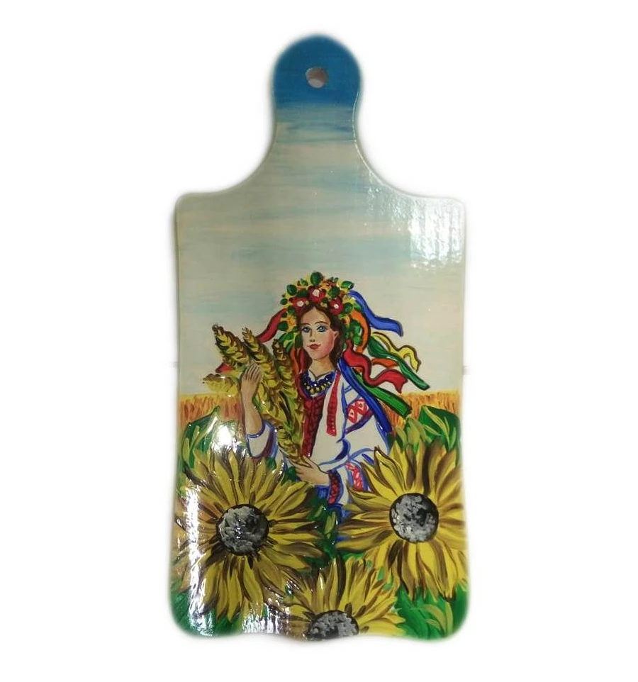 Доска кухонная «Украина с колосками пшеницы» бук, расписано вручную (36.5×17×1.5 см)