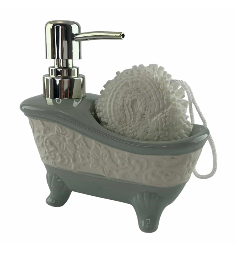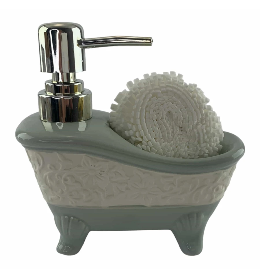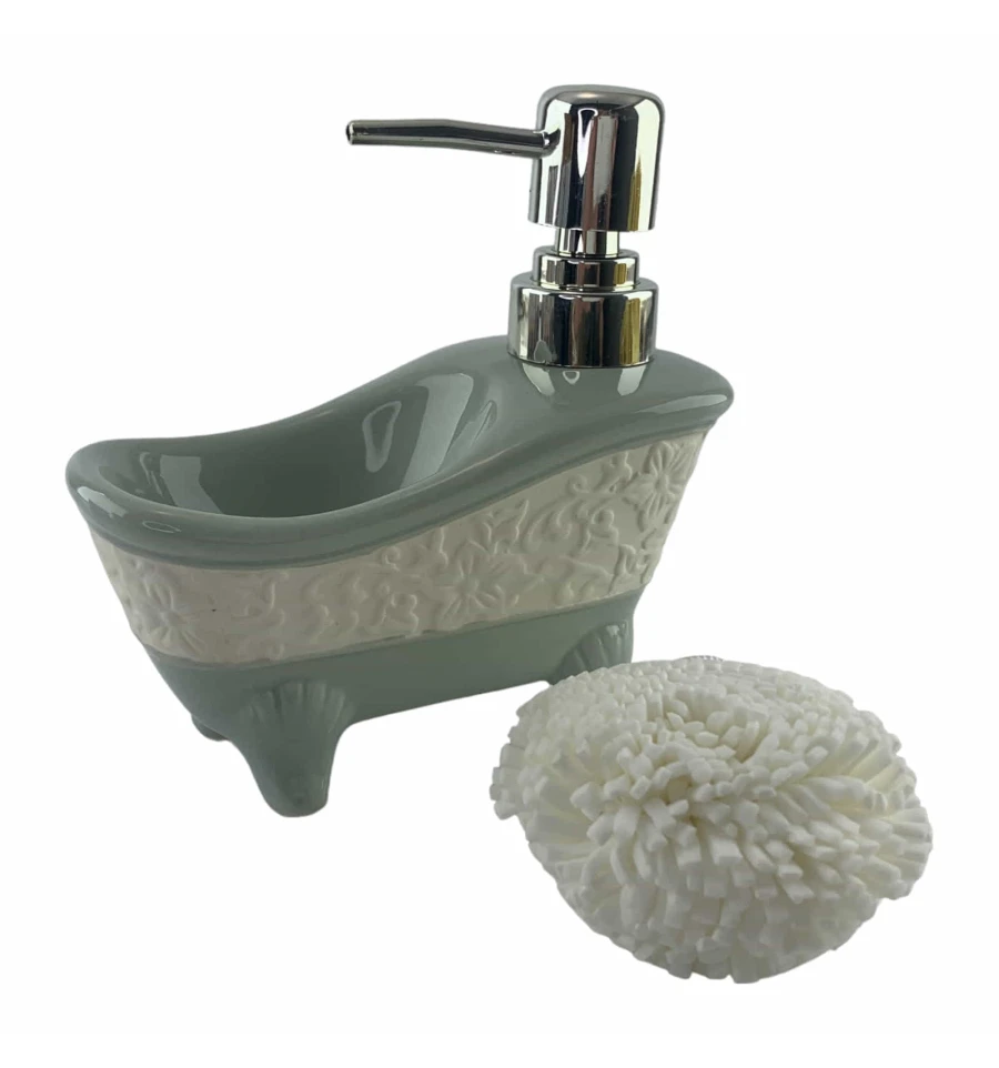 Диспенсер для мыла с мочалкой "Ванна" лазурный.